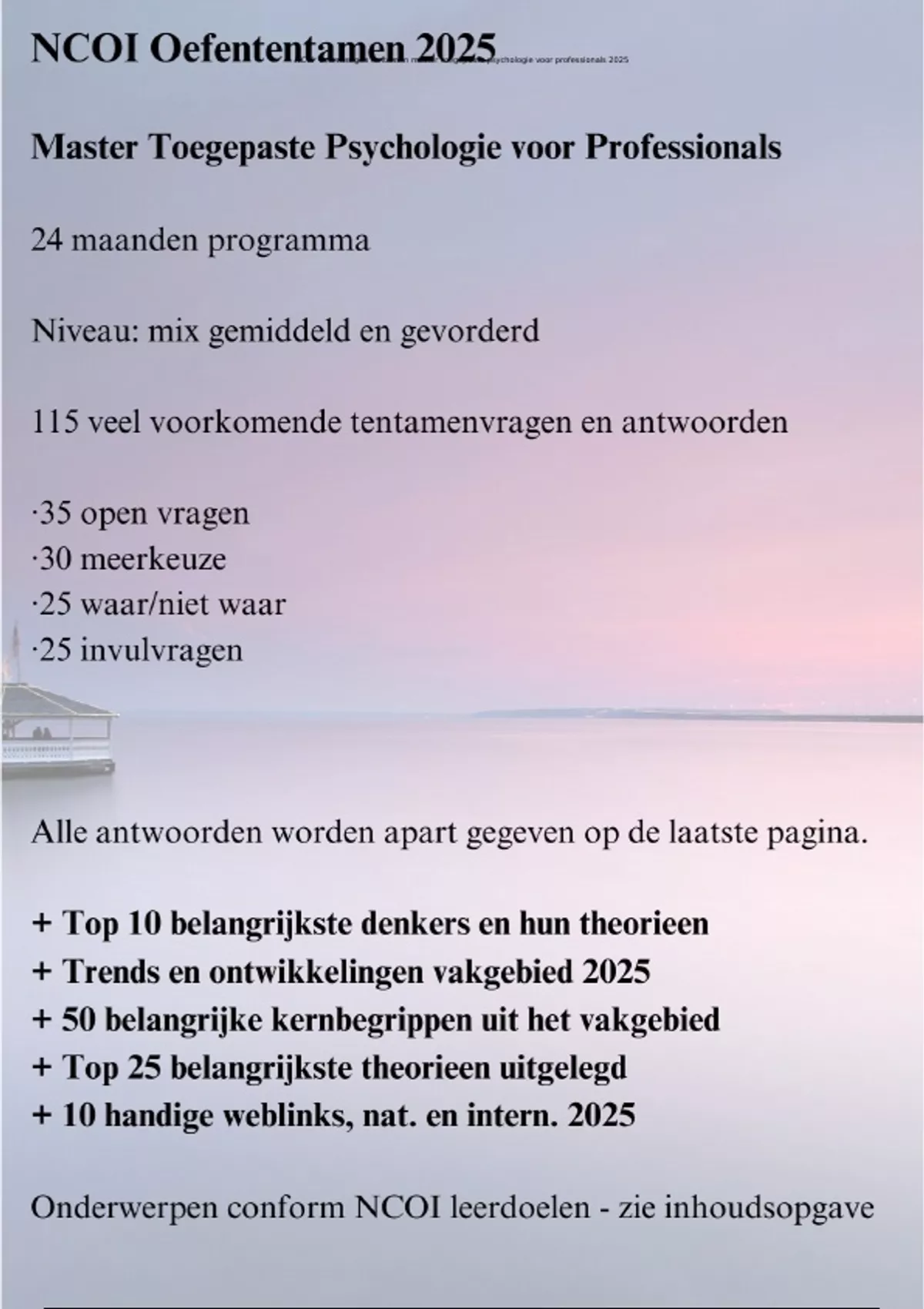 , NCOI oefenvragen tentamen master toegepaste psychologie voor professionals 2025