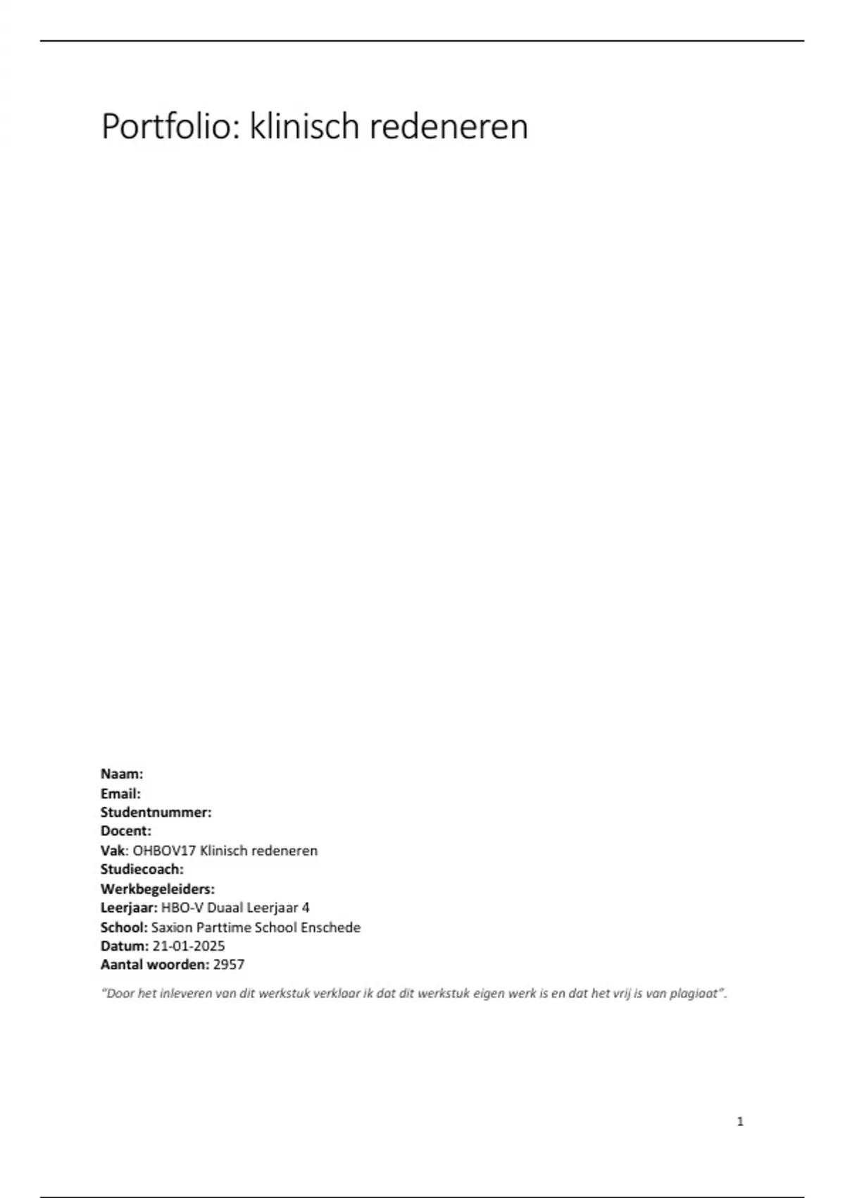 de duale opleiding volg ik module OHBOV17 klinisch redeneren