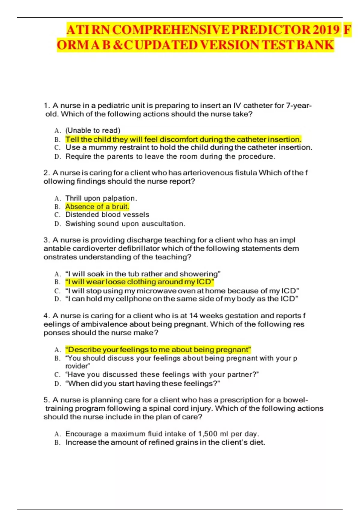 , ATI RN COMPREHENSIVE PREDICTOR 2019 F