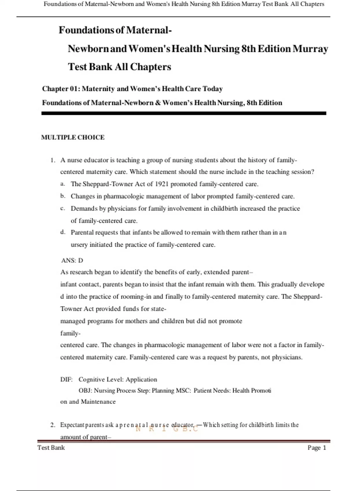 , FoundationsnofnMaternal-Newbornnandn Women'sn Health nNursingn8th nEditionnMurraynTestnBank n Alln Chapters
