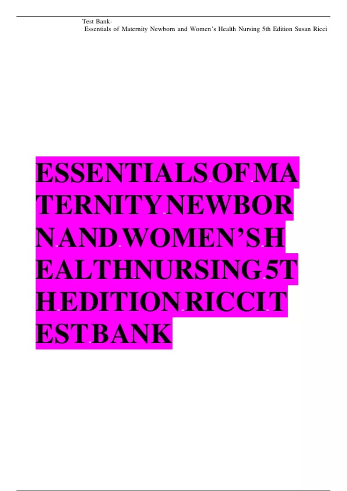 Test Bank For Essentials of Maternity, Newborn, and Women’s Health 5th Edition By Susan Ricci 9781975112646 Chapter 1-24 Complete Guide.0df