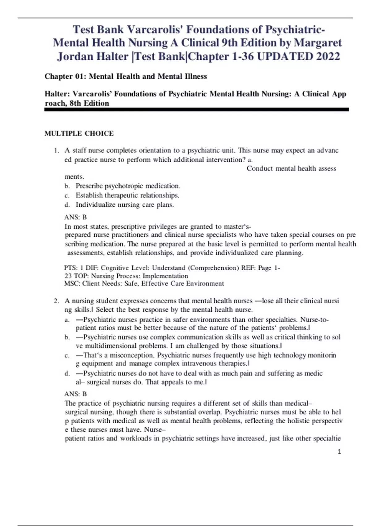 Test bank For Varcarolis Foundations of Psychiatric Mental Health Nursing 9th Edition by Margaret Halter 9780323697071 Chapter 1-36 All Chapters with Answers and Rationals.pdf