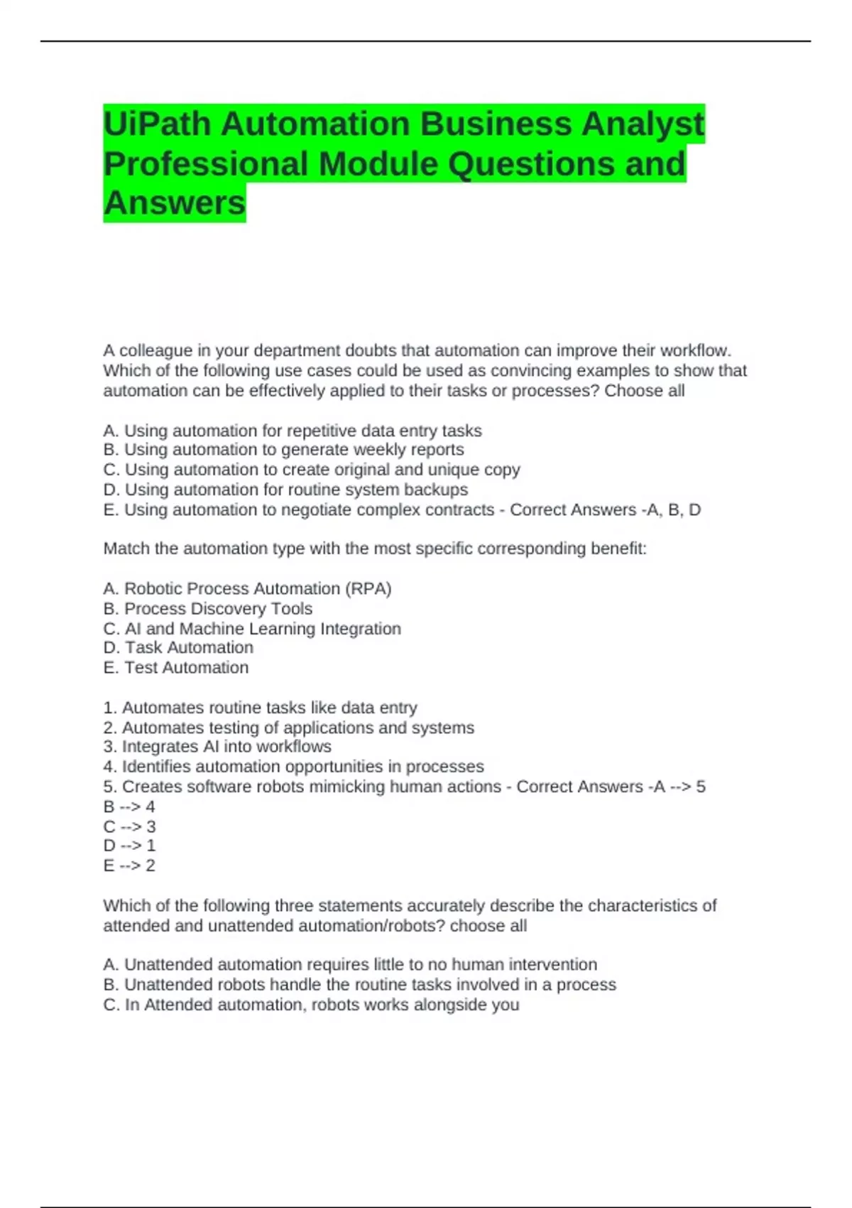 UiPath Automation Business Analyst Professional Module Questions and Answers