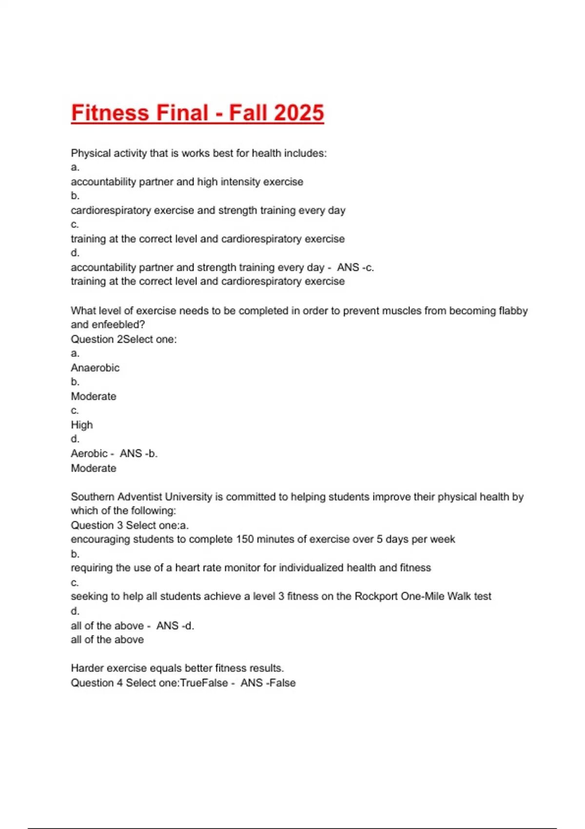 Fitness Final - Fall 2025 Exam Questions and Answers 2025/2026( A+ GRADED 100% VERIFIED).