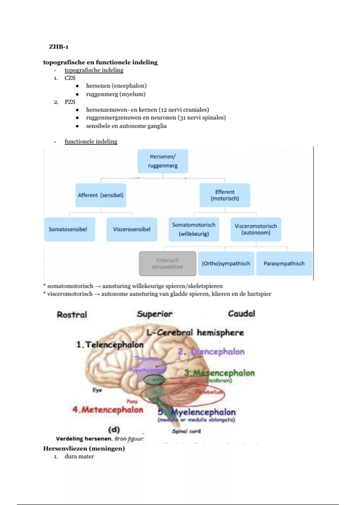 * somatomotorisch → aansturing willekeurige spieren/skeletspieren