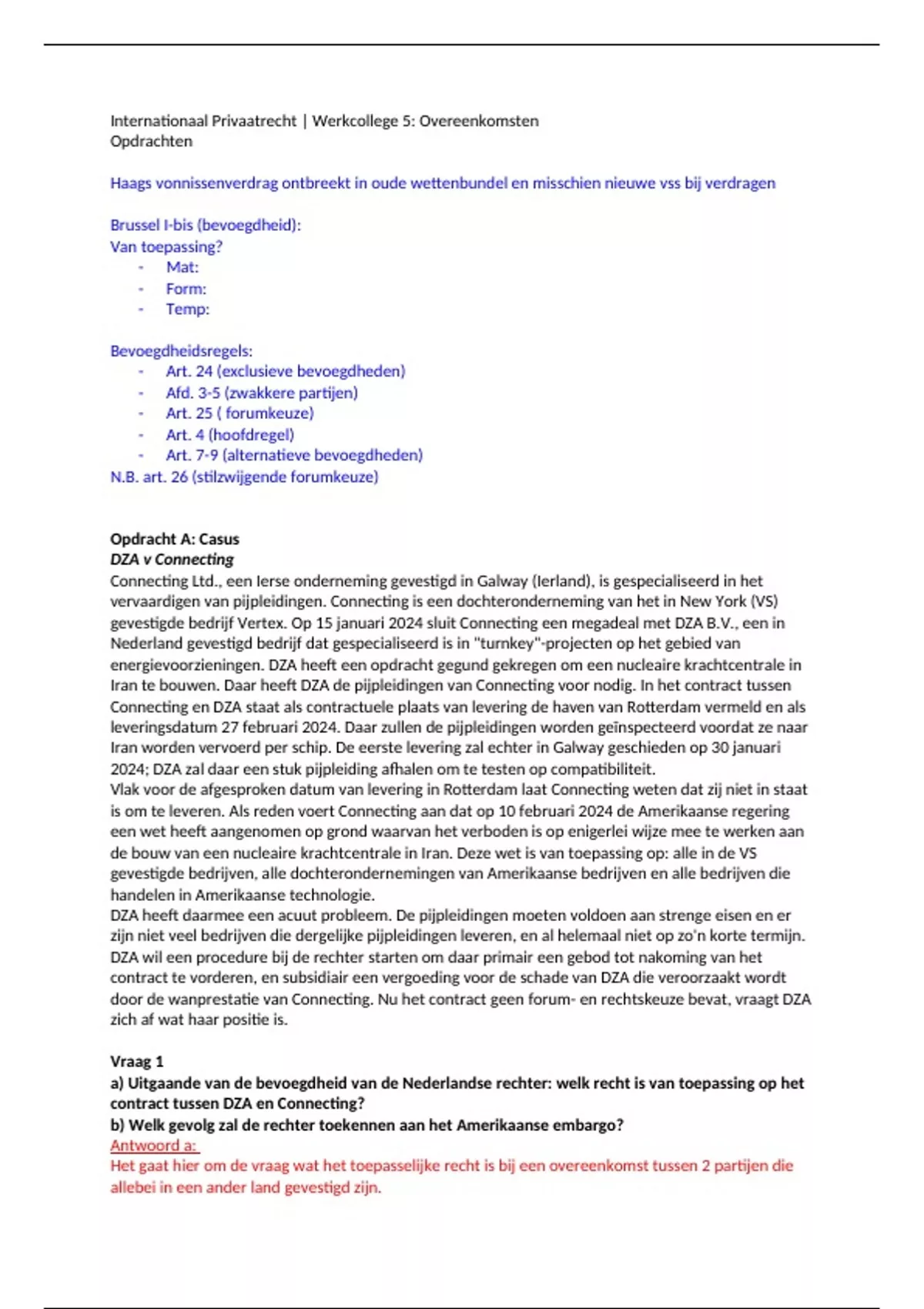 Internationaal Privaatrecht | Werkcollege 5: Overeenkomsten