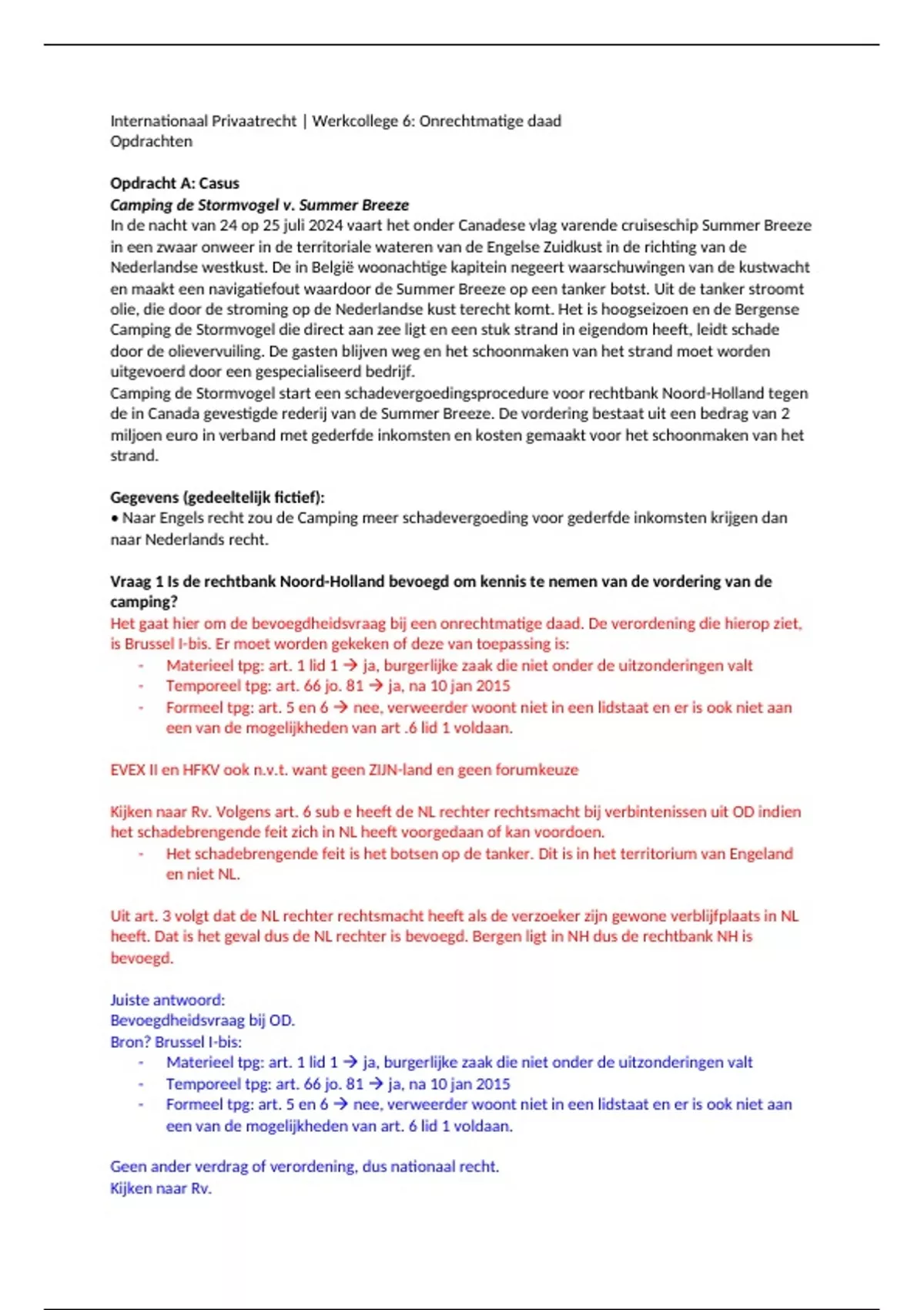 Internationaal Privaatrecht | Werkcollege 6: Onrechtmatige daad
