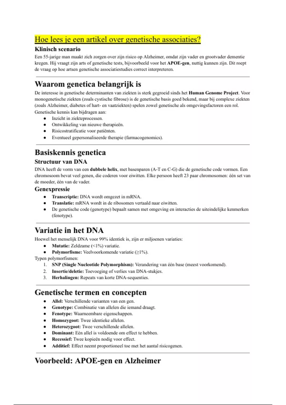 Voorbeeld: APOE-gen en Alzheimer