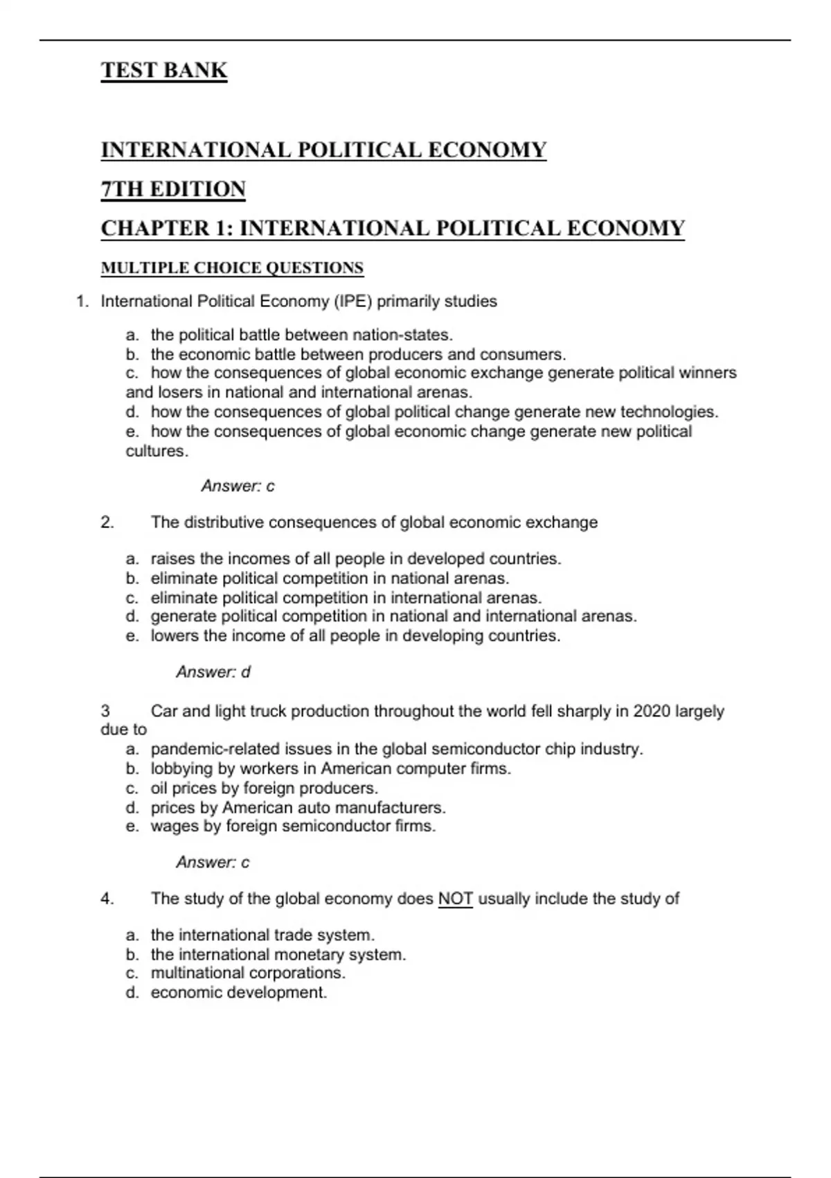 CHAPTER 1: INTERNATIONAL POLITICAL ECONOMY