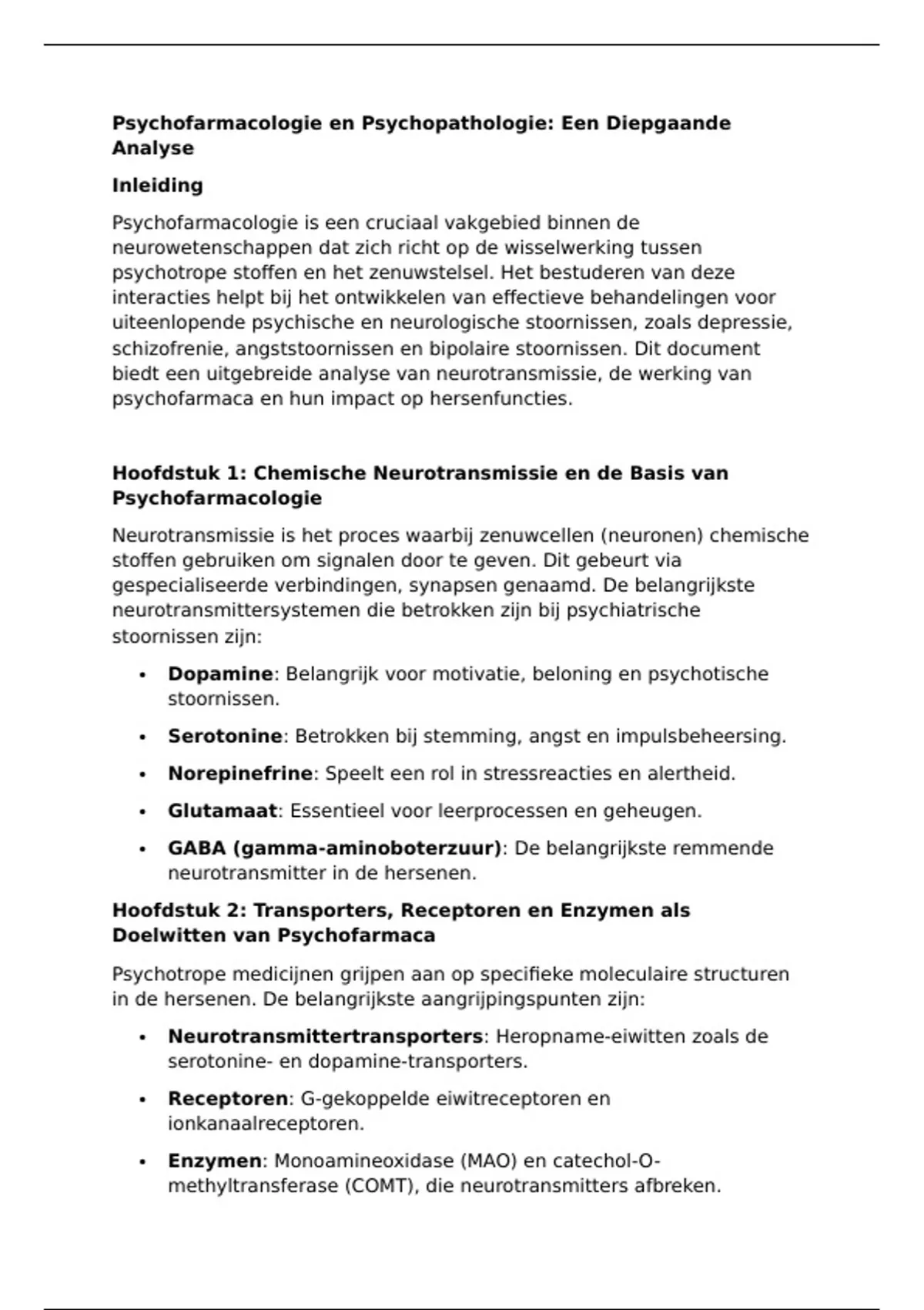 Hoofdstuk 1: Chemische Neurotransmissie en de Basis van