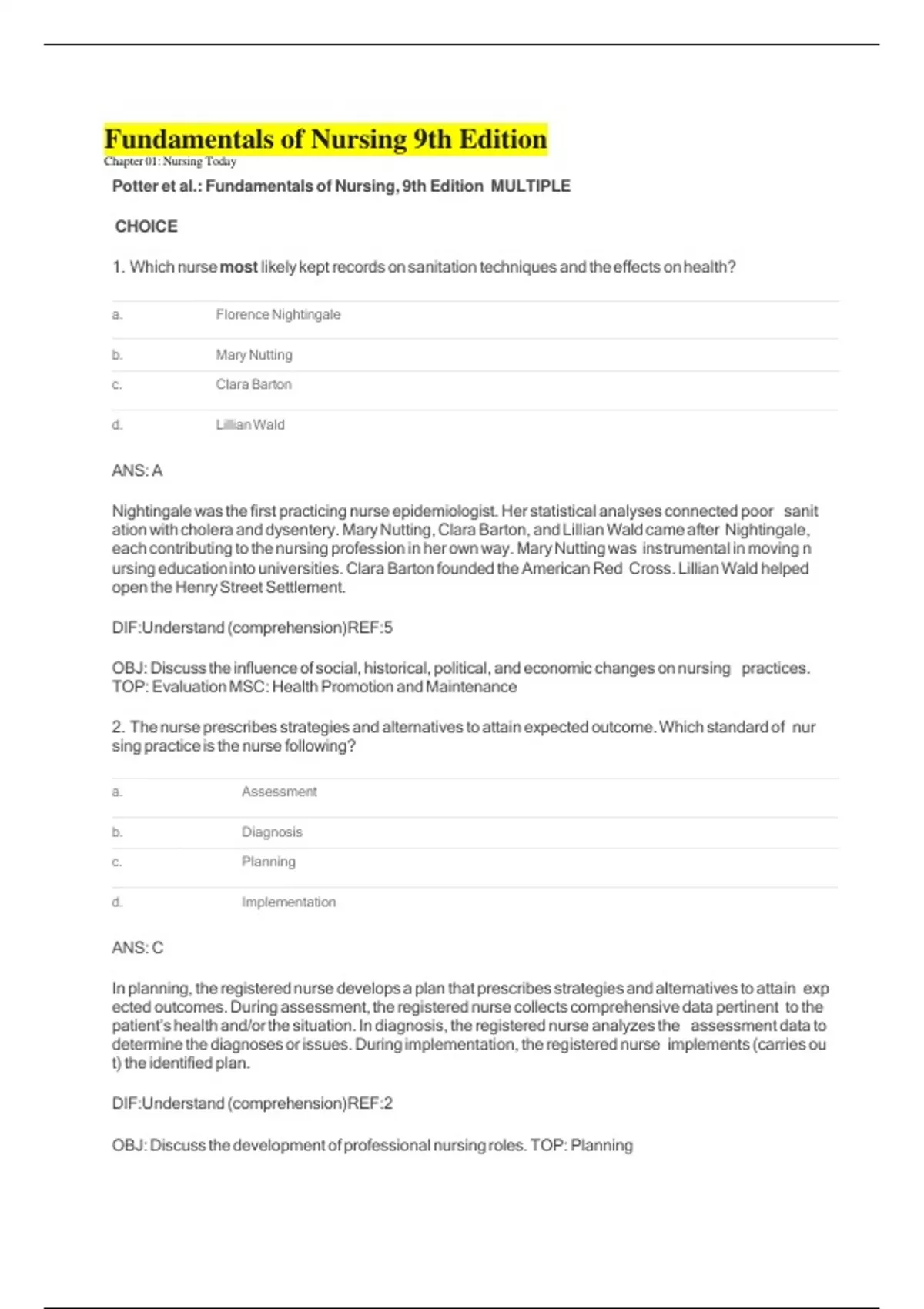 1. Whichrnursermostrlikelyrkeptrrecordsronrsanitationrtechniquesrandrthereffectsronrhealth?r