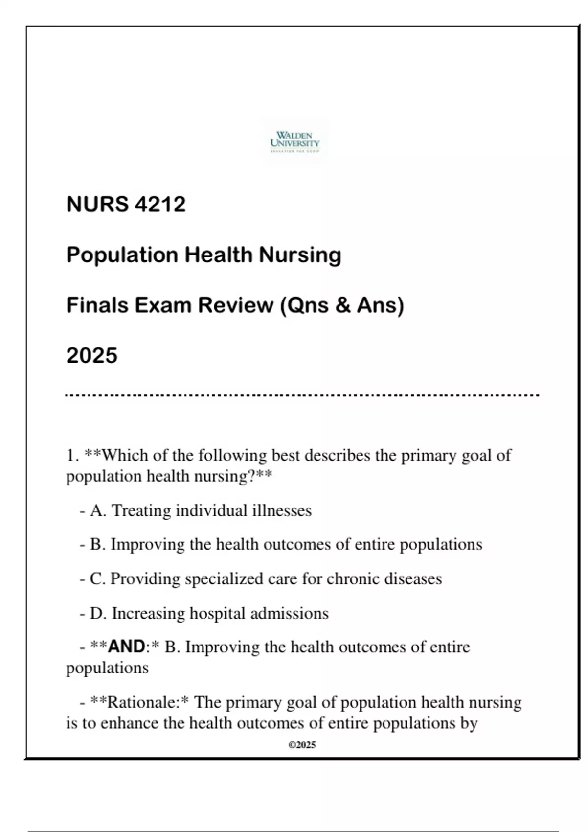 NURS 4212 (Population Health Nursing) Finals Exam Review (Qns & Ans) 2025NURS 4212 (Population Health Nursing) Finals Exam Review (Qns & Ans) 2025NURS 4212 (Population Health Nursing) Finals Exam Review (Qns & Ans) 2025