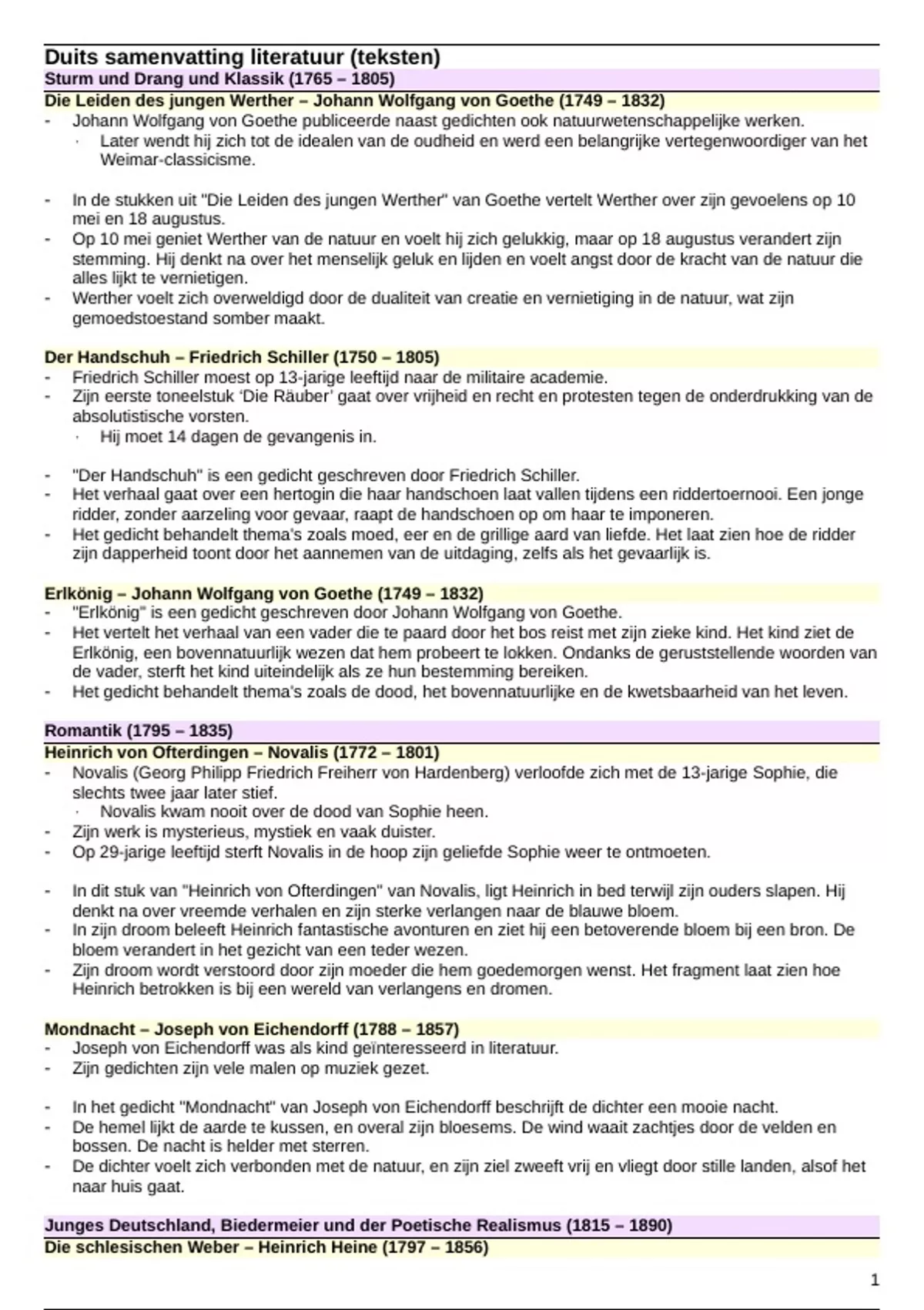 In dit stuk van "Heinrich von Ofterdingen" van Novalis, ligt Heinrich in bed terwijl zijn ouders slapen. Hij