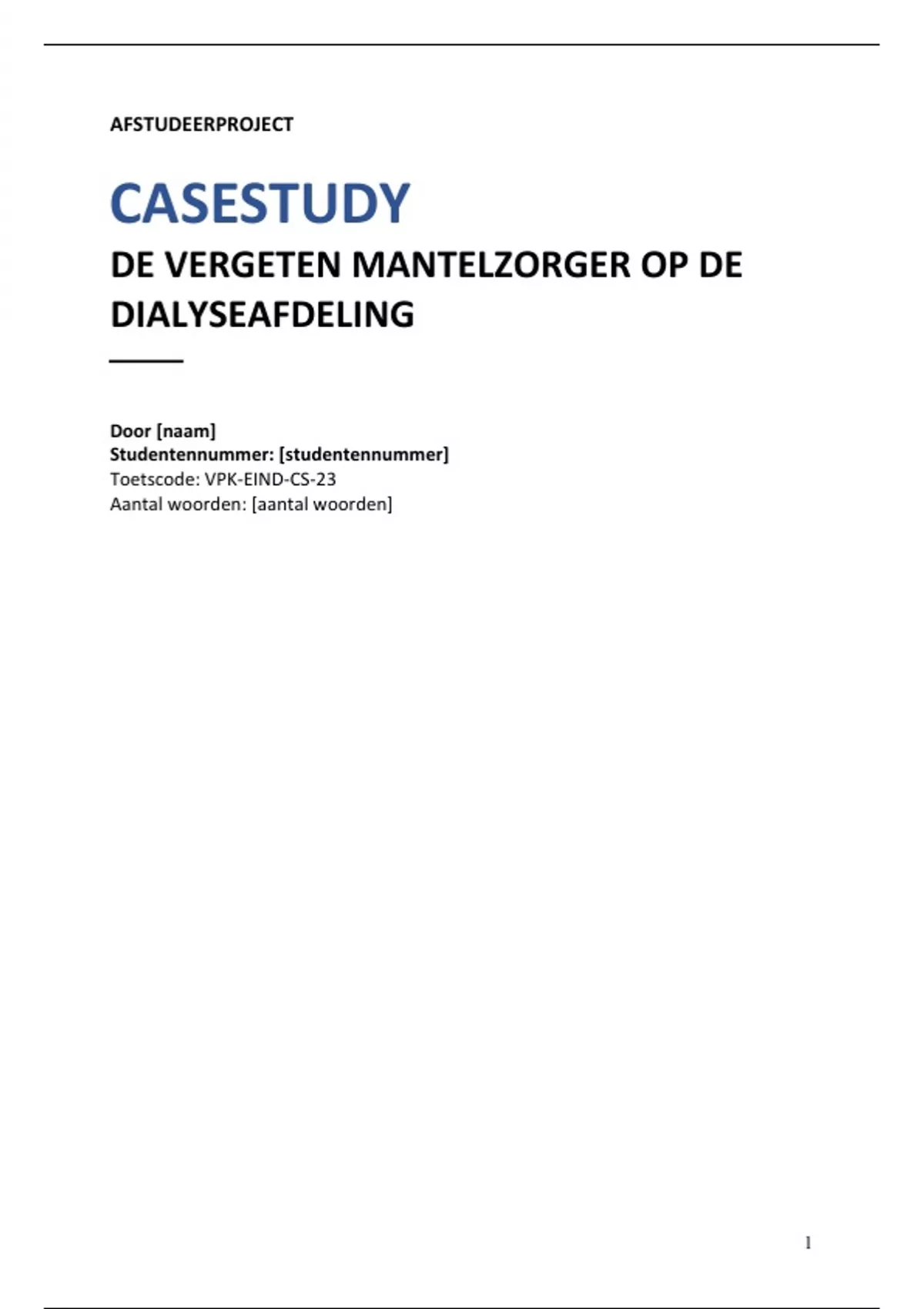 gebaseerd op een specifieke patiëntencasus binnen de dialyseafdeling van het [naam ziekenhuis] De focus ligt