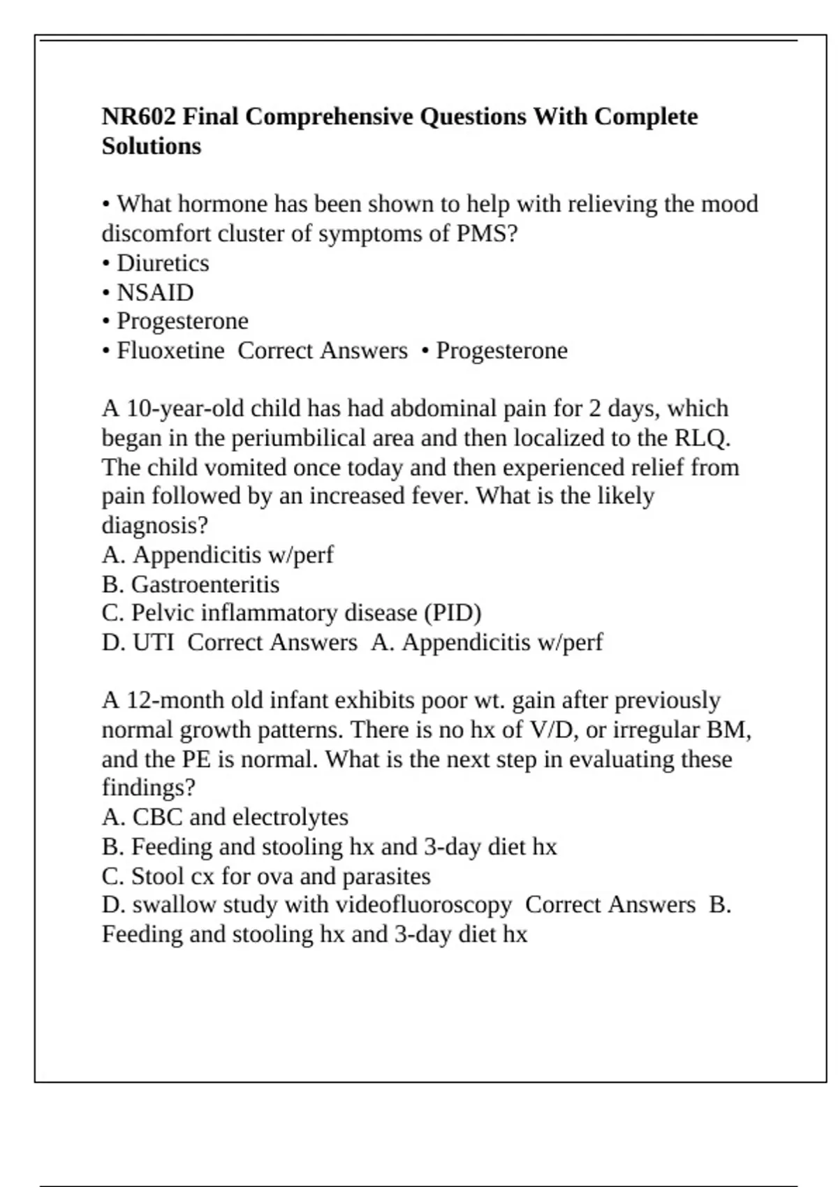 NR602 Final Comprehensive Questions With Complete Solutions.