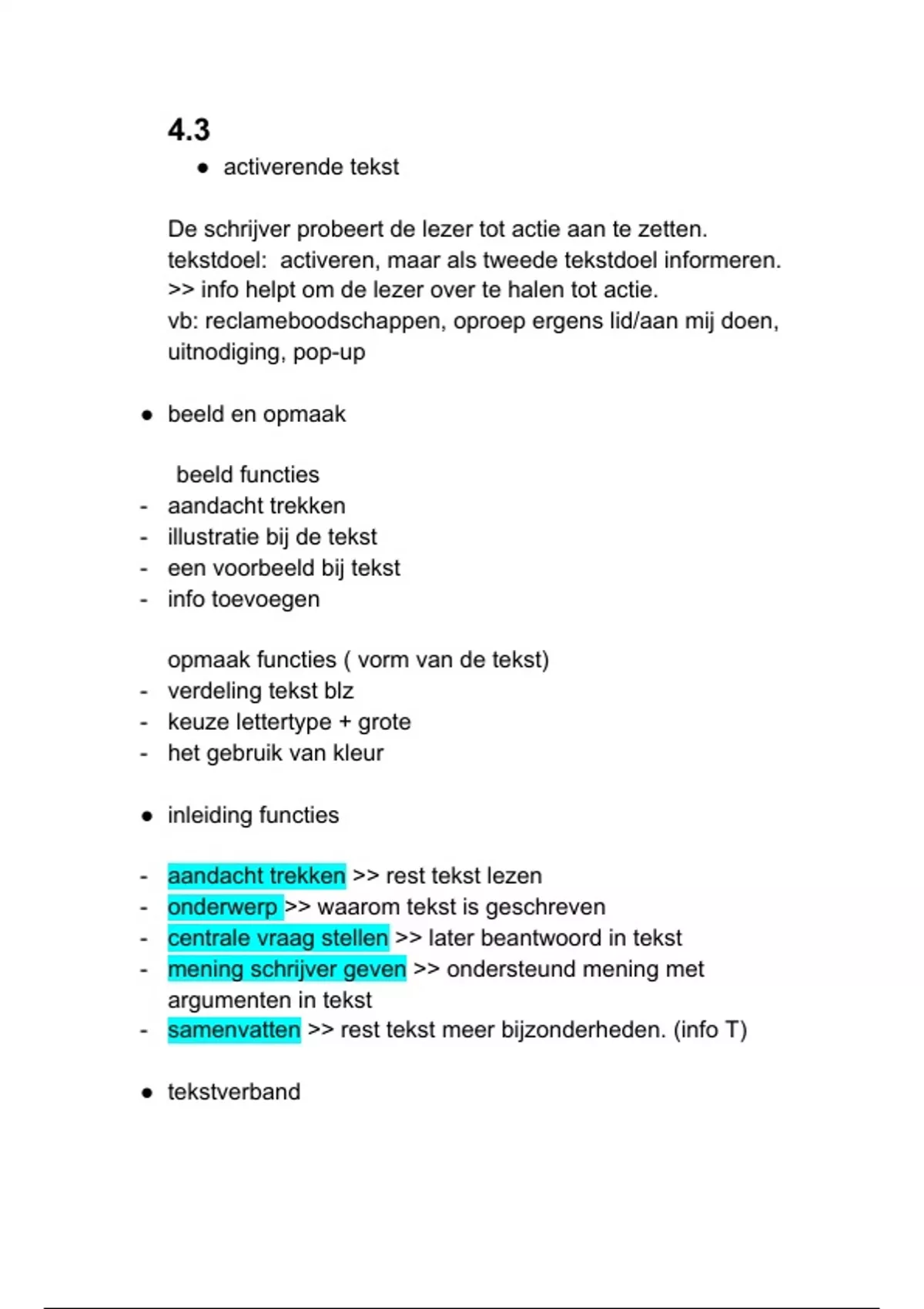 tekstdoel: activeren, maar als tweede tekstdoel informeren.