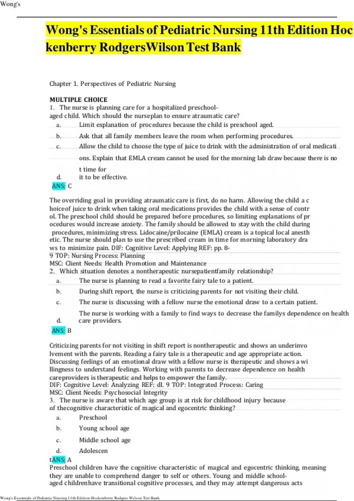 Test Bank for Wong-s Essentials of Pediatric Nursing, 11th Edition by Marilyn J. Hockenberry.pdf