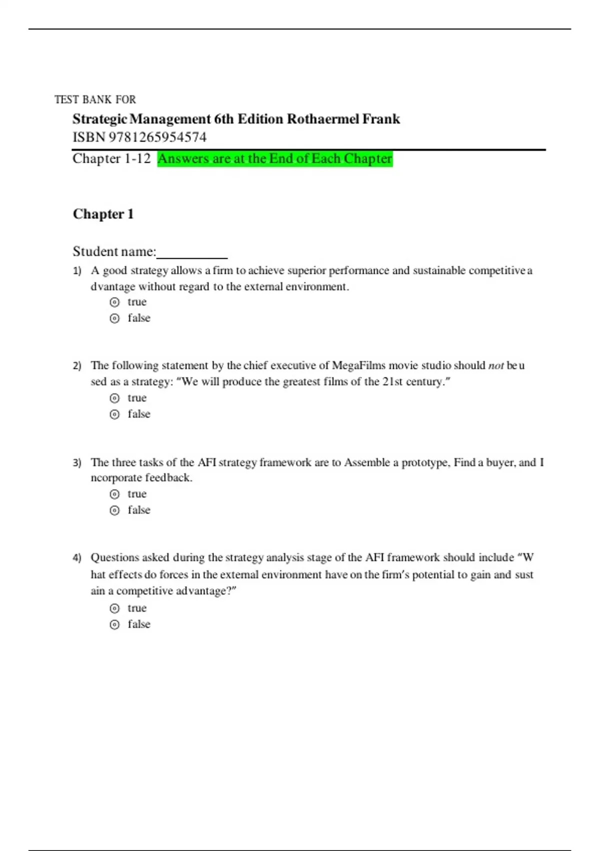 Strategic Management 6th Edition Rothaermel Frank