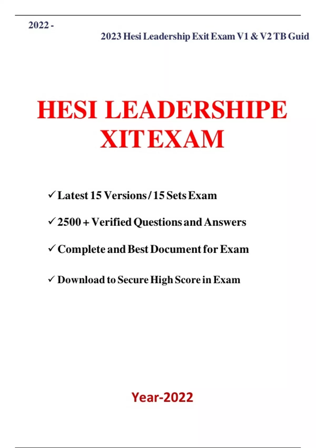2023 Hesi Leadership Exit Exam V1 & V2 TB Guid
