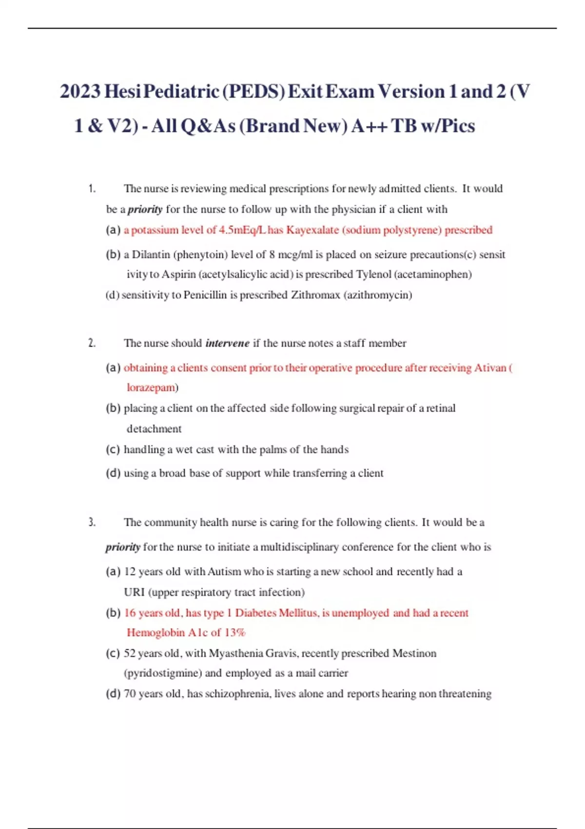 7. Thennursenhasn received n report n onn fournclients.n Thennursenshould nfinrstnassessn then c
