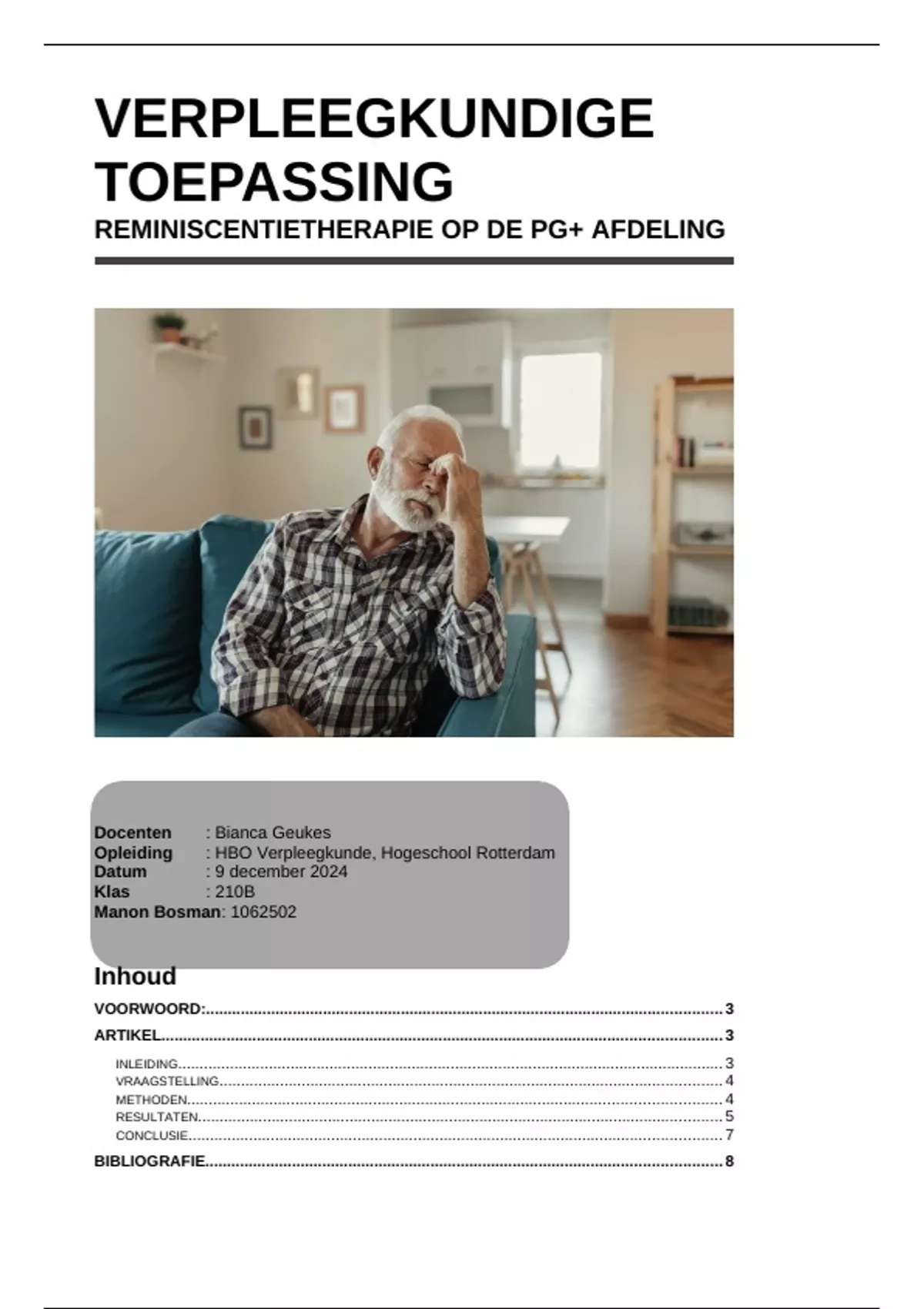 REMINISCENTIETHERAPIE OP DE PG+ AFDELING