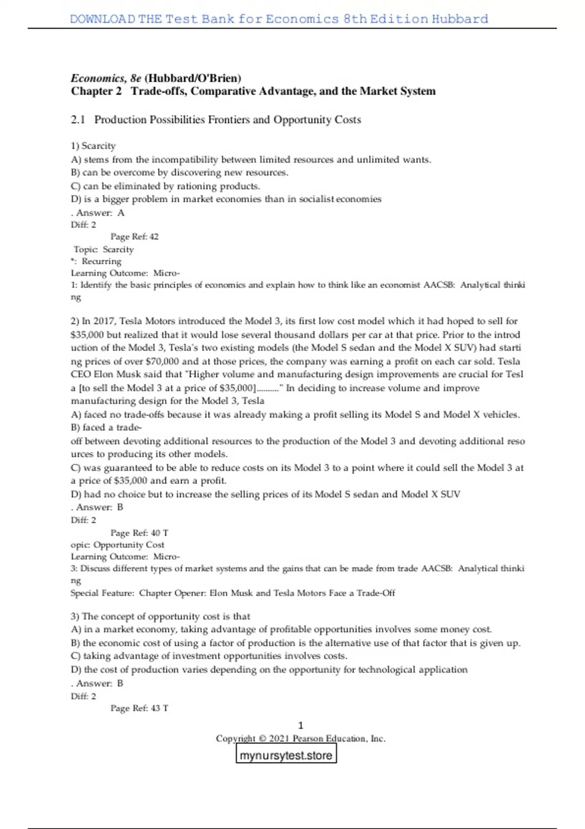 , DOWNLOAD THE Test Bank for Economics 8th Edition Hubbard