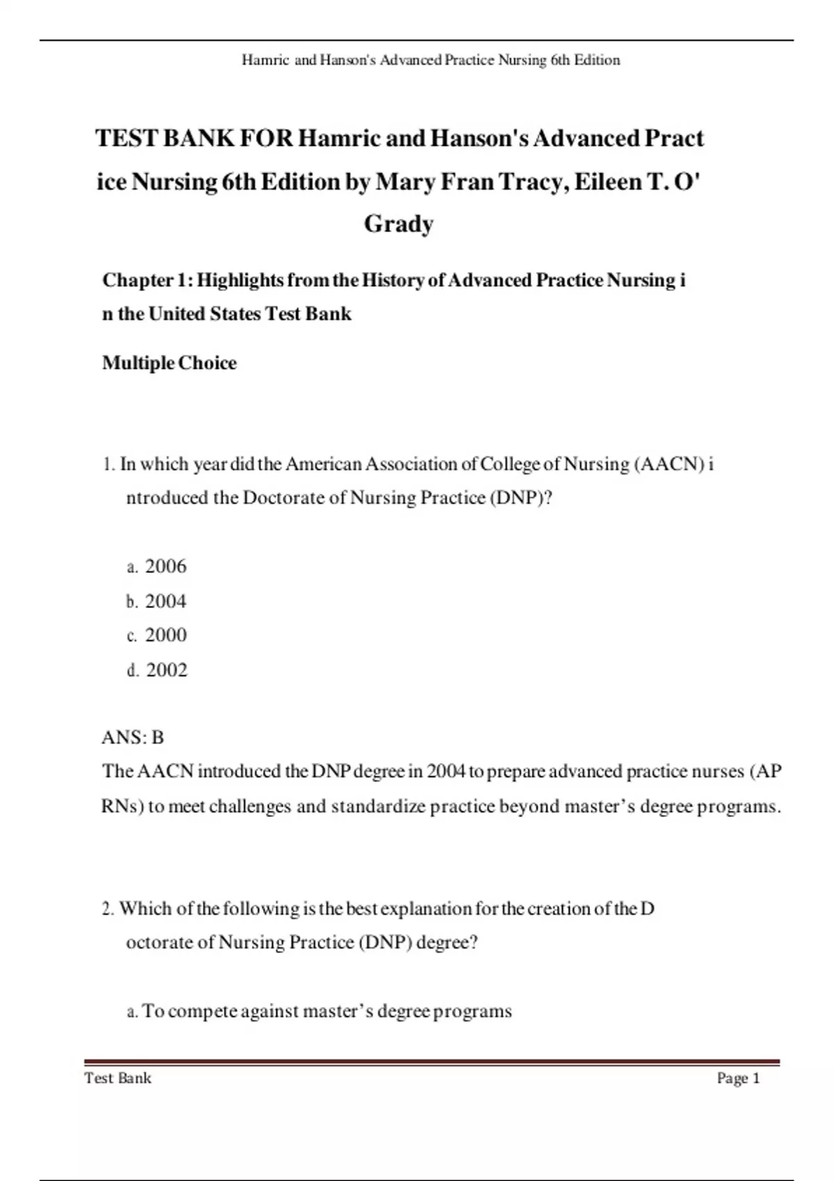 Test Bank For Hamric and Hanson's Advanced Practice Nursing 6th Edition by Eileen O'Grady, Mary Fran Tracy 9780323447751 Chapter 1-24 Complete Guide .pdf