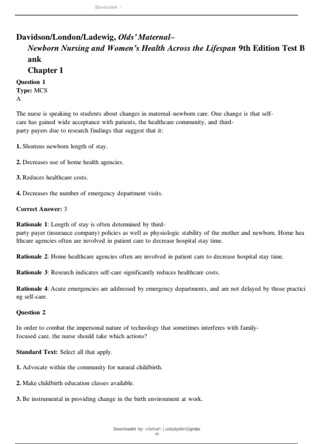 Test Bank for Olds' Maternal-Newborn Nursing & Women's Health Across the Lifespan, 12th Edition by Davidson - 2025 Published (All Chapters included.pdf