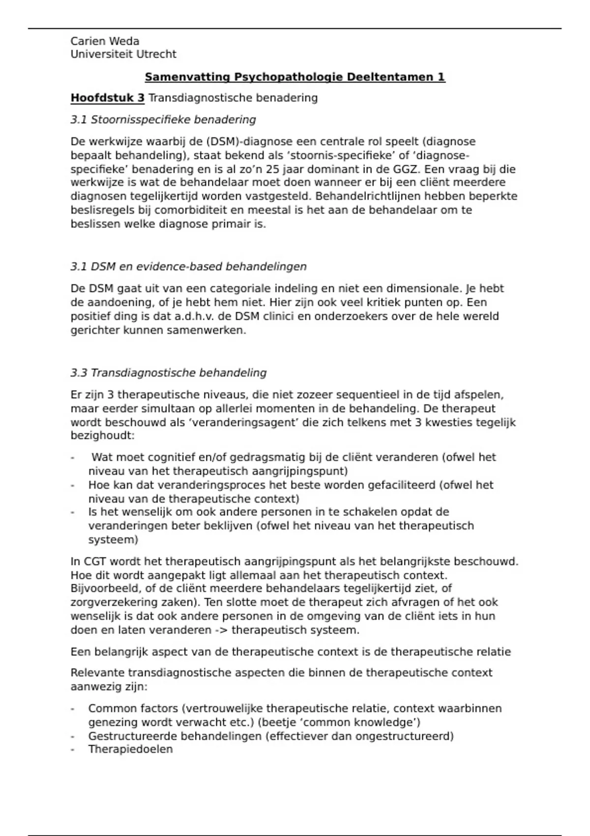 Dit is een samenvatting van de hoofdstukken uit het boek die je nodig hebt voor deeltentamen 1 van Psychopathologie aan de UU. Inclusief samenvattingen van de benodigde artikelen. Ik heb zelf een 7 gehaald aan de hand van deze samenvatting.