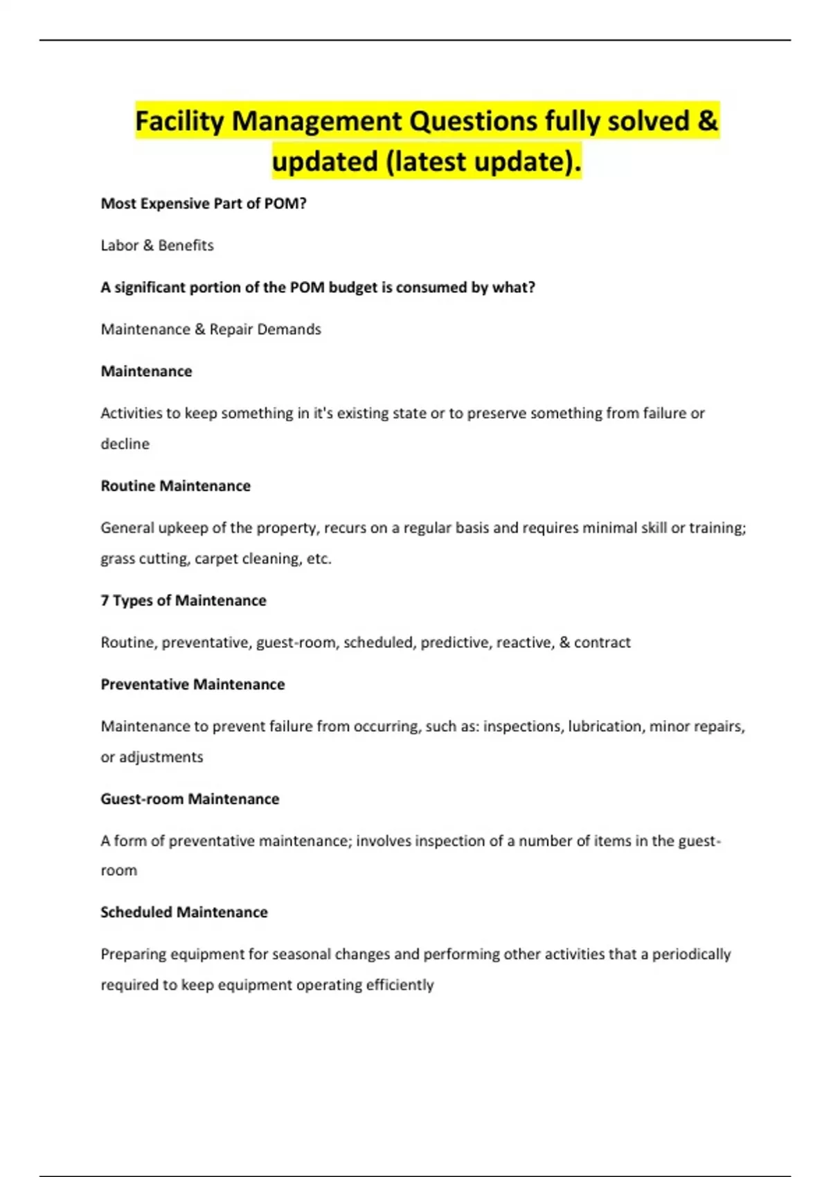 Routine, preventative, guest-room, scheduled, predictive, reactive, & contract