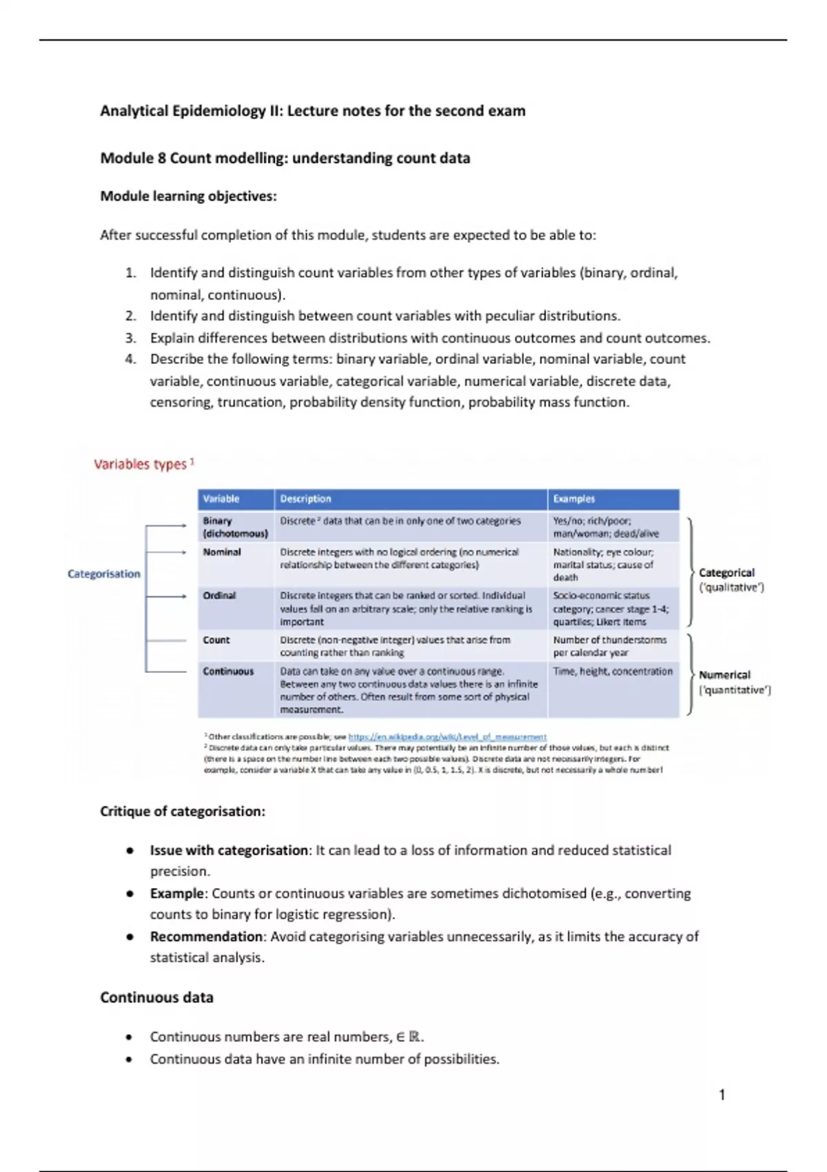 1. Identify and distinguish count variables from other types of variables (binary, ordinal,
