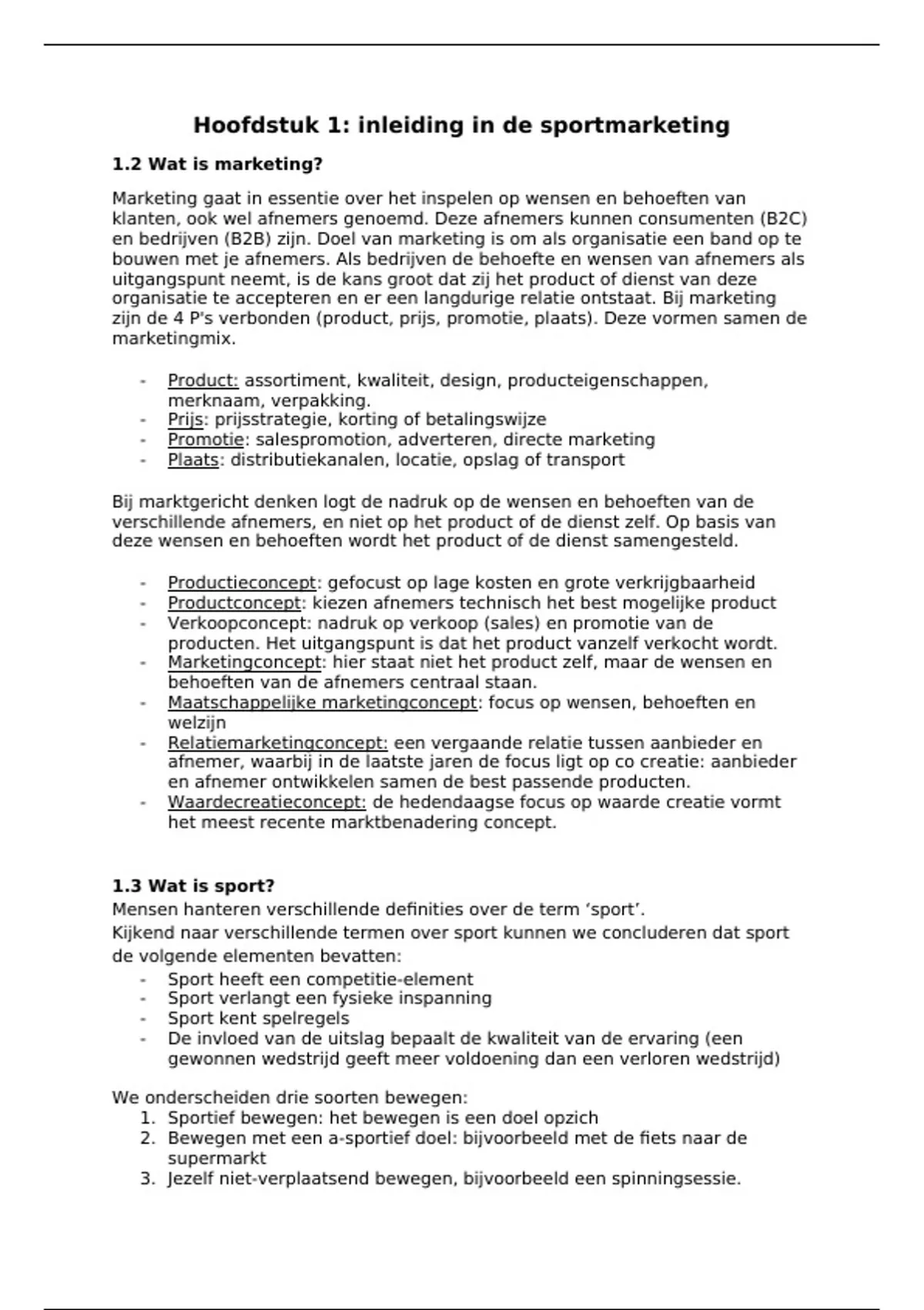 Hoofdstuk 1: inleiding in de sportmarketing