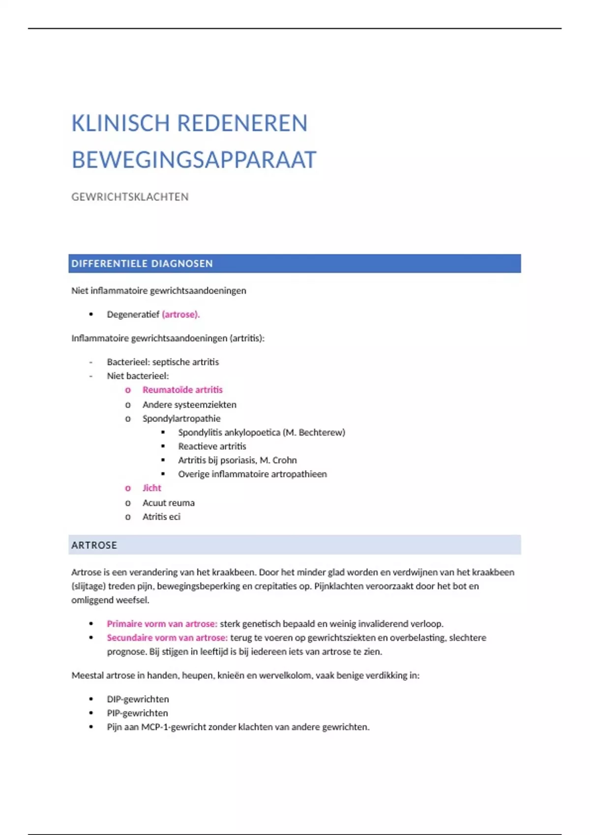  Degeneratief (artrose).