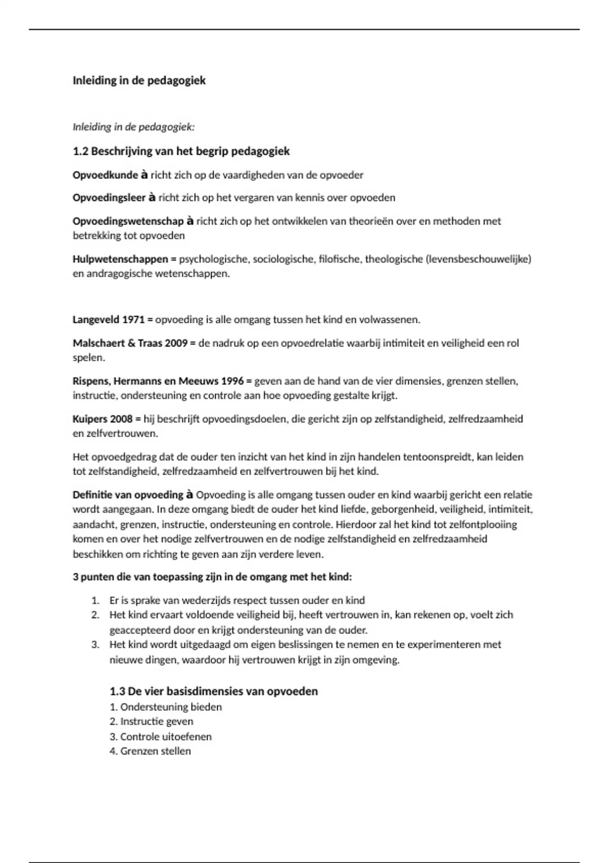 De belangrijke begrippen van het boek inleiding in de pedagogiek zijn uitgewerkt. Alleen van de hoofdstukken 1 t/m 3 van het boek inleiding in de pedagogiek primair onderwijs.
