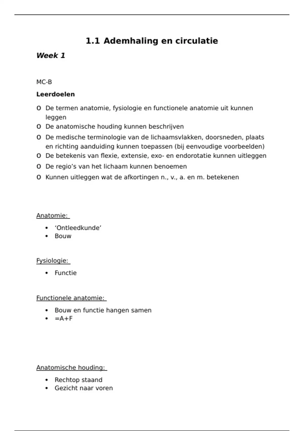 o De termen anatomie, fysiologie en functionele anatomie uit kunnen