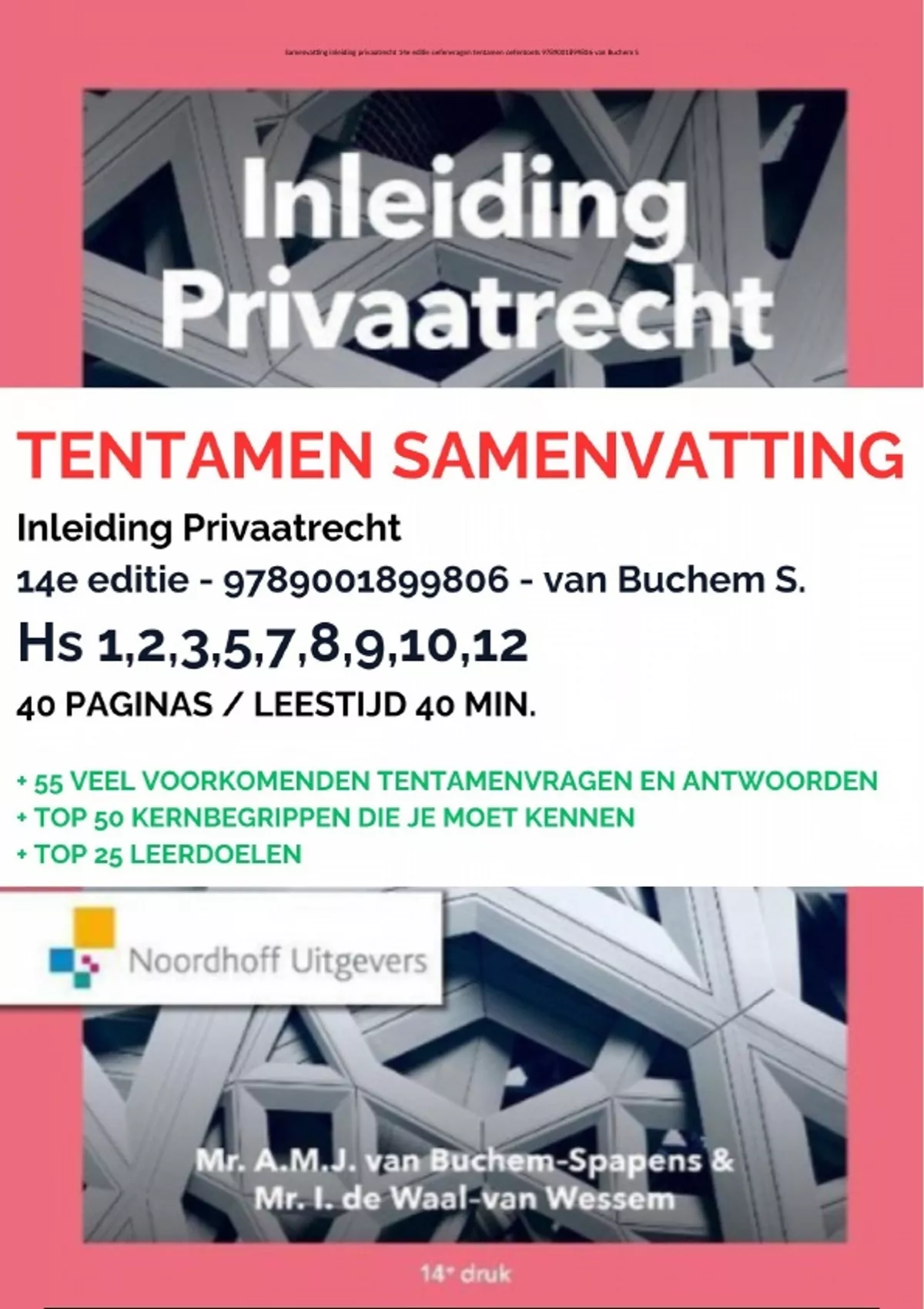 , Samenvatting inleiding privaatrecht 14e editie oefenvragen tentamen oefentoets 9789001899806 van Buchem S