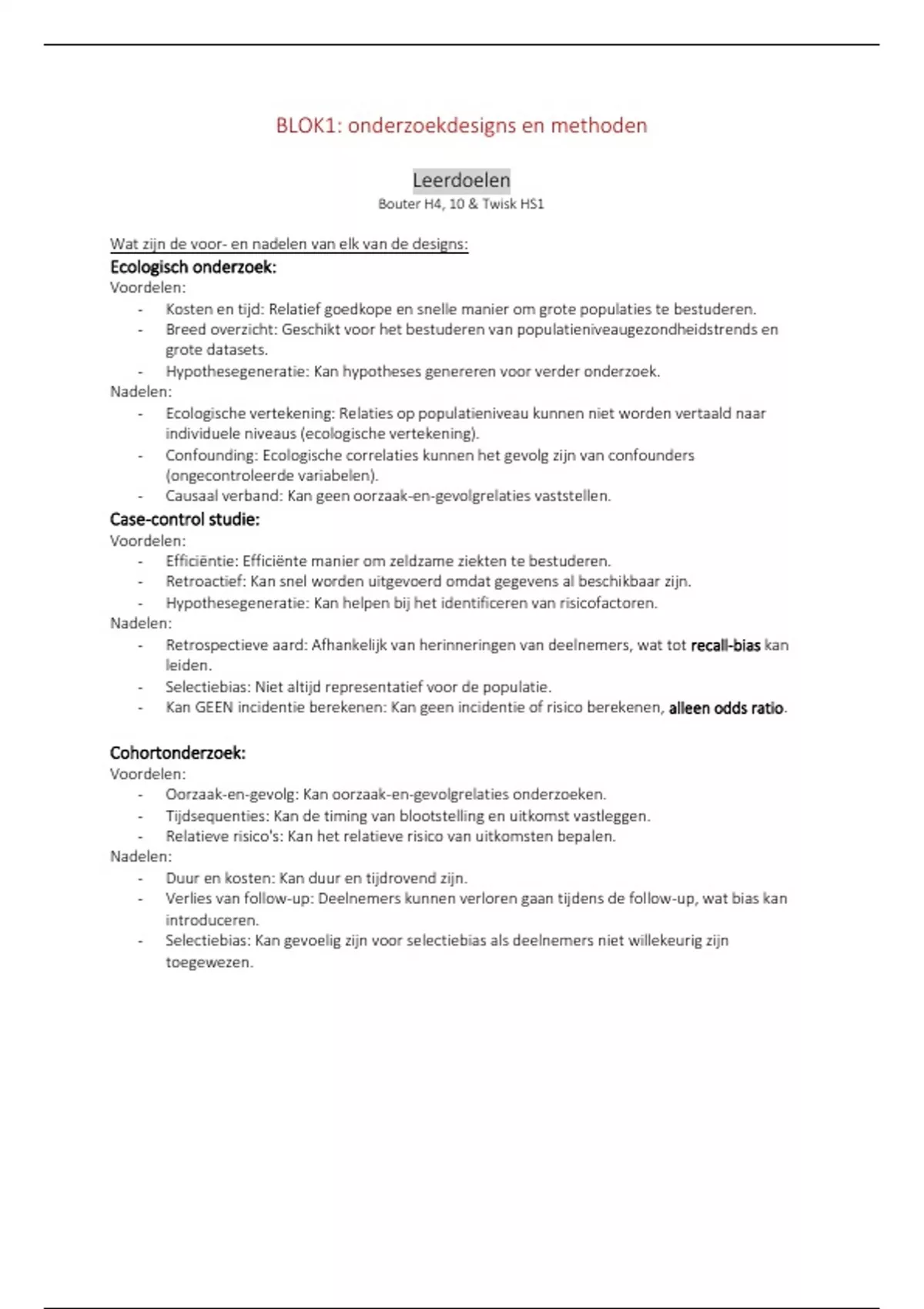 - Retrospectieve aard: Afhankelijk van herinneringen van deelnemers, wat tot recall-bias kan