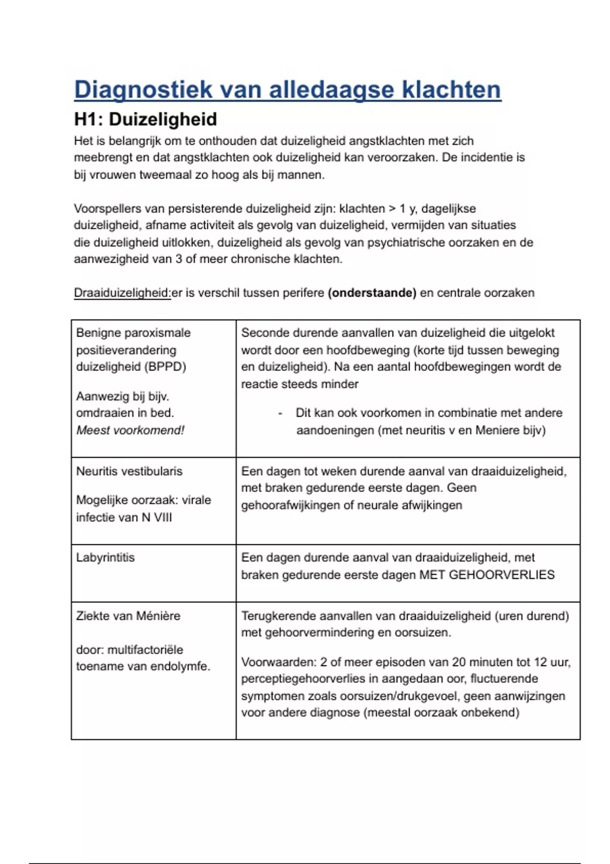 Draaiduizeligheid:er is verschil tussen perifere (onderstaande) en centrale oorzaken