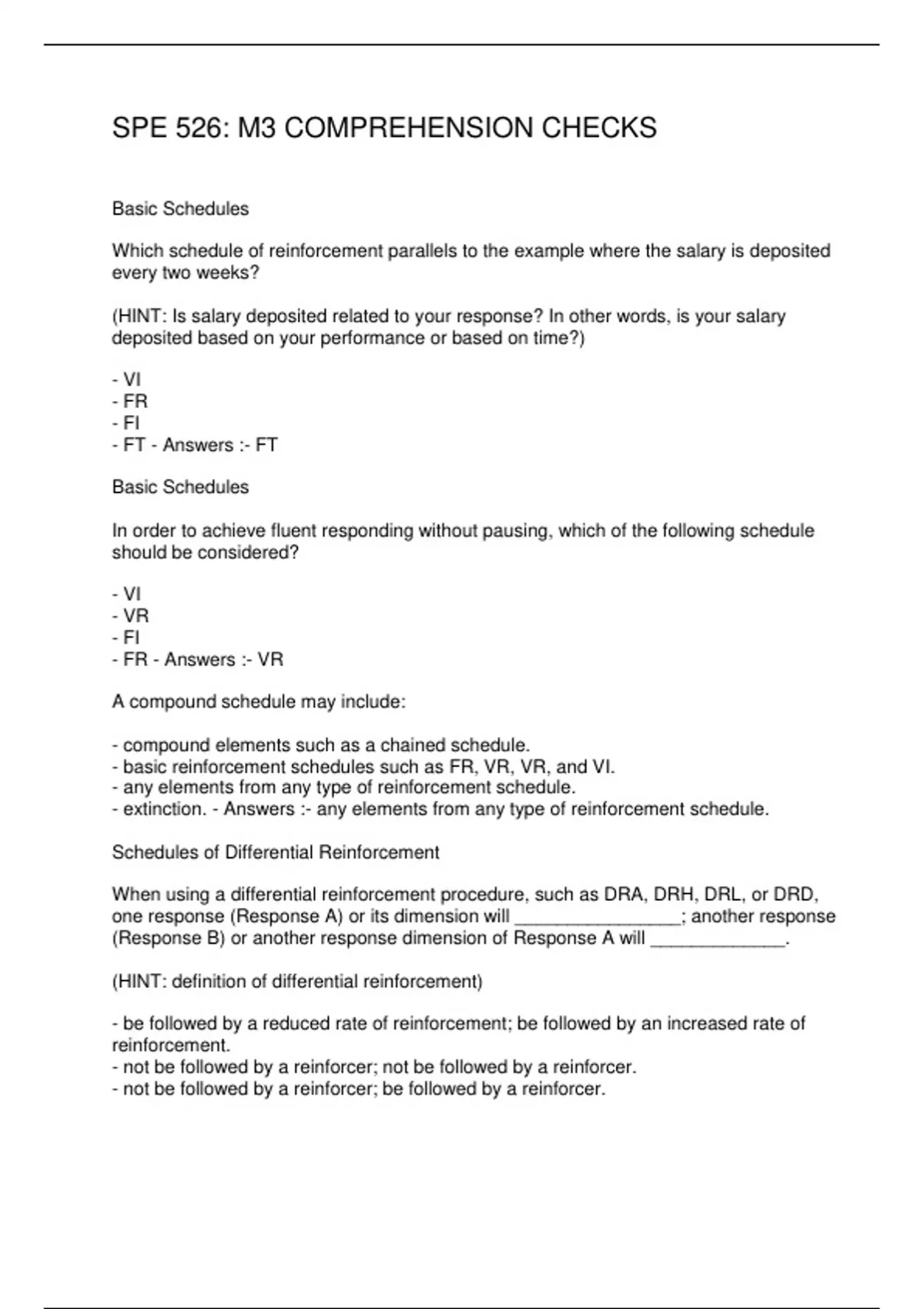 - extinction. - Answers :- any elements from any type of reinforcement schedule.
