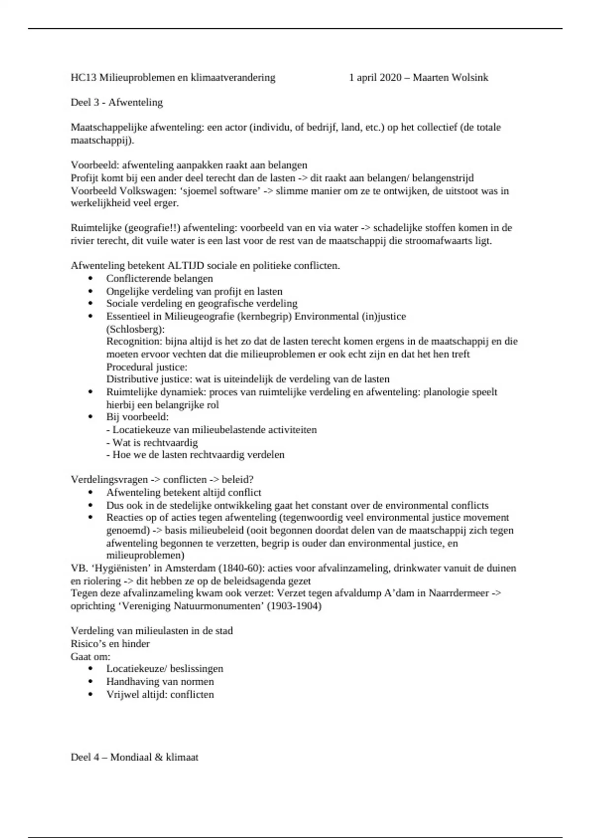 HC13 Milieuproblemen en klimaatverandering 1 april 2020 – Maarten Wolsink