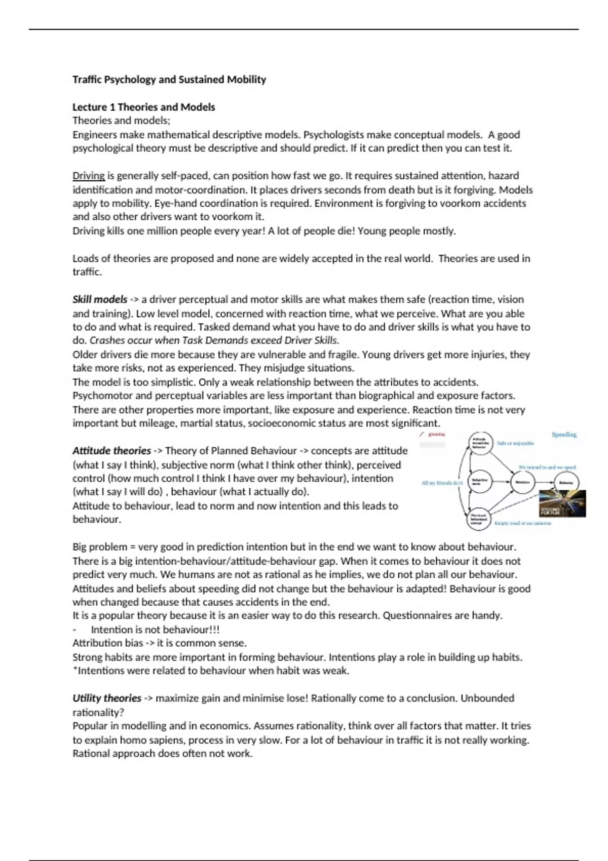 Detailed lecture notes from all lectures of the course traffic psychology and sustained mobility, from the minor Psychology in Society.