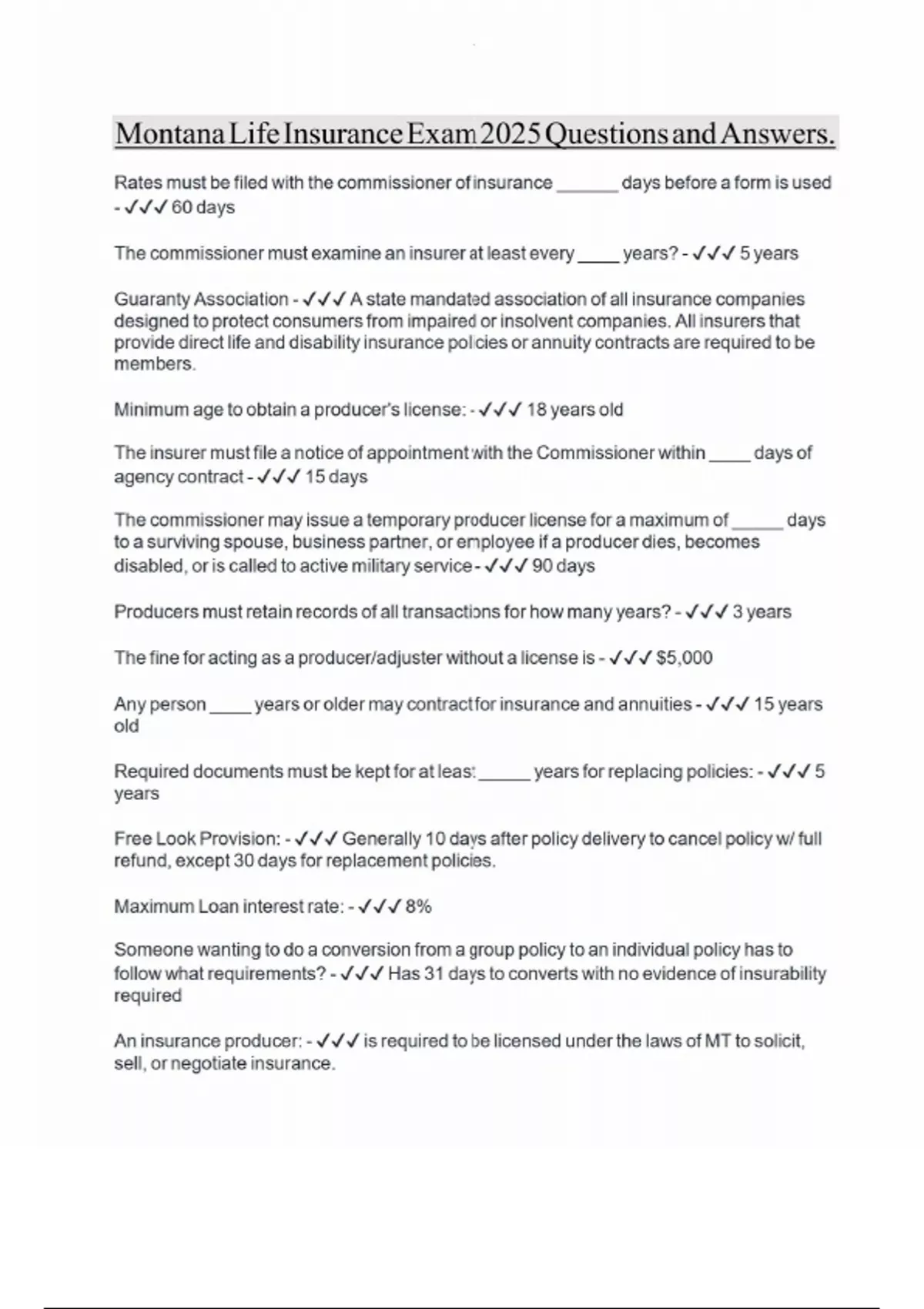 Montana Life Insurance Exam 2025 Questions and Answers.
