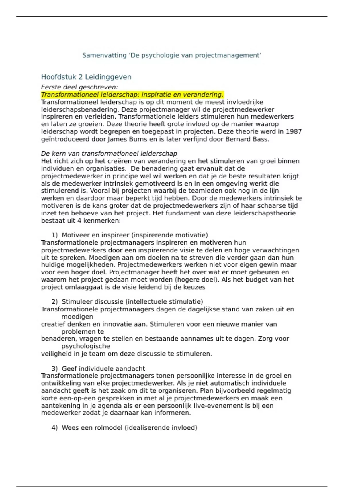 project goed te leiden. De nadruk ligt sterk op de sociale kanten van leiderschap.
