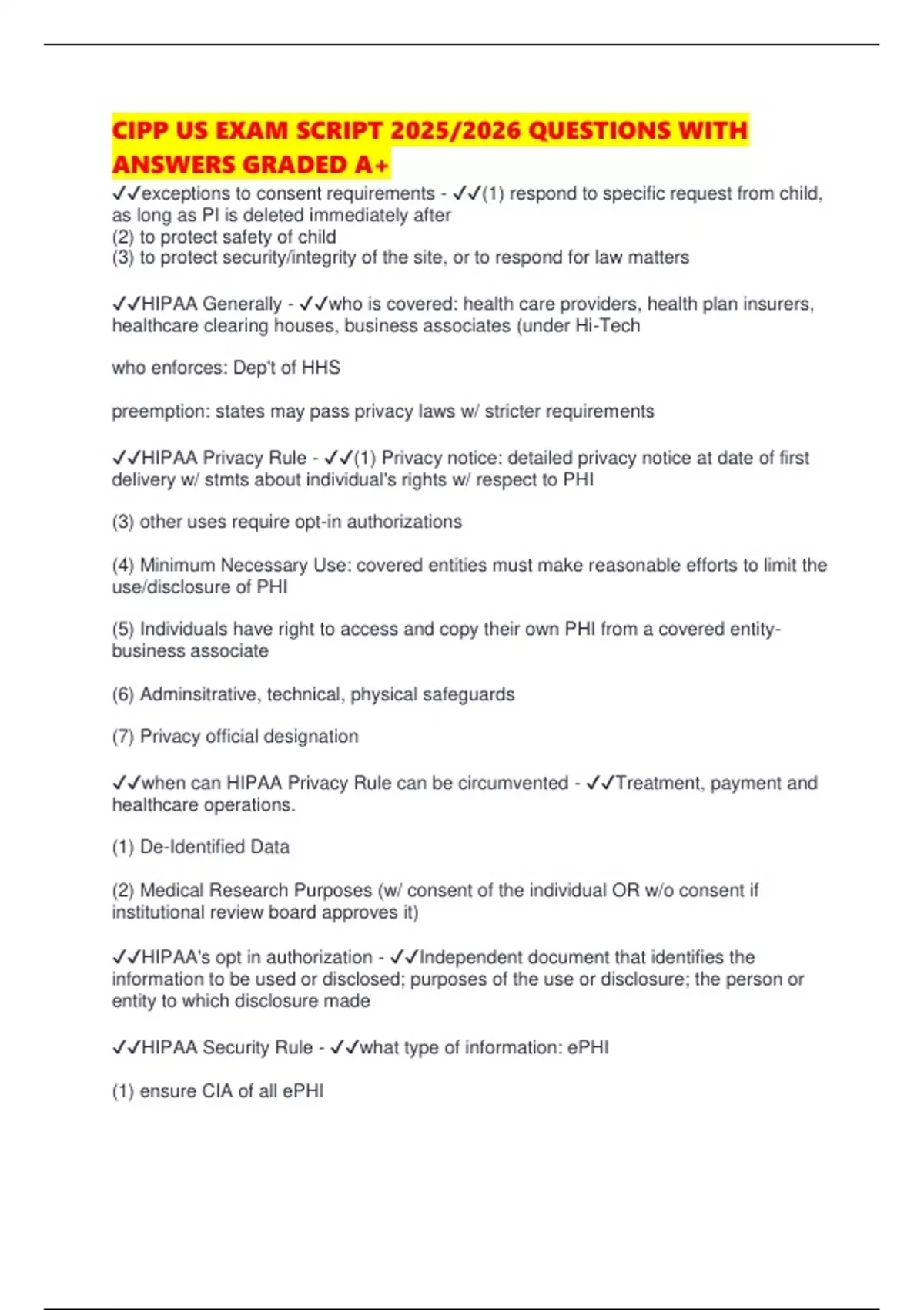 ✔✔HIPAA's opt in authorization - ✔✔Independent document that identifies the