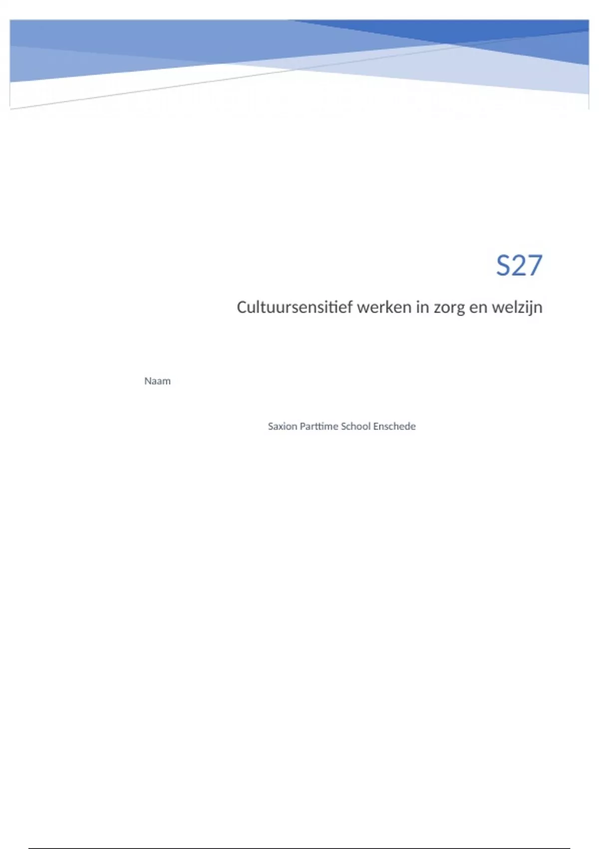 Voor de module ‘’Cultuursensitief werken in zorg en welzijn’’ heb ik onderstaand