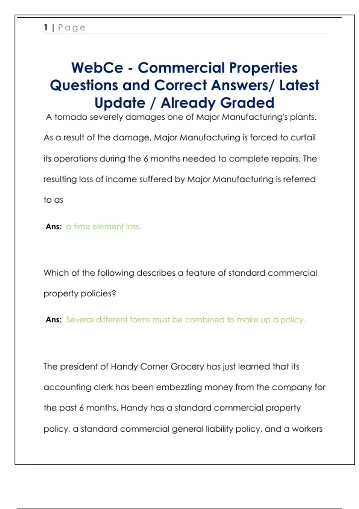 the past 6 months. Handy has a standard commercial property