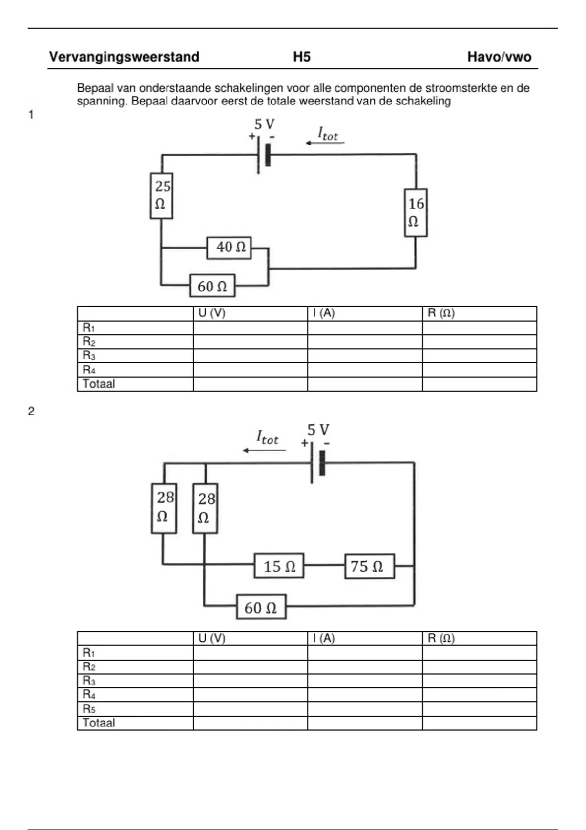 spanning. Bepaal daarvoor eerst de totale weerstand van de schakeling