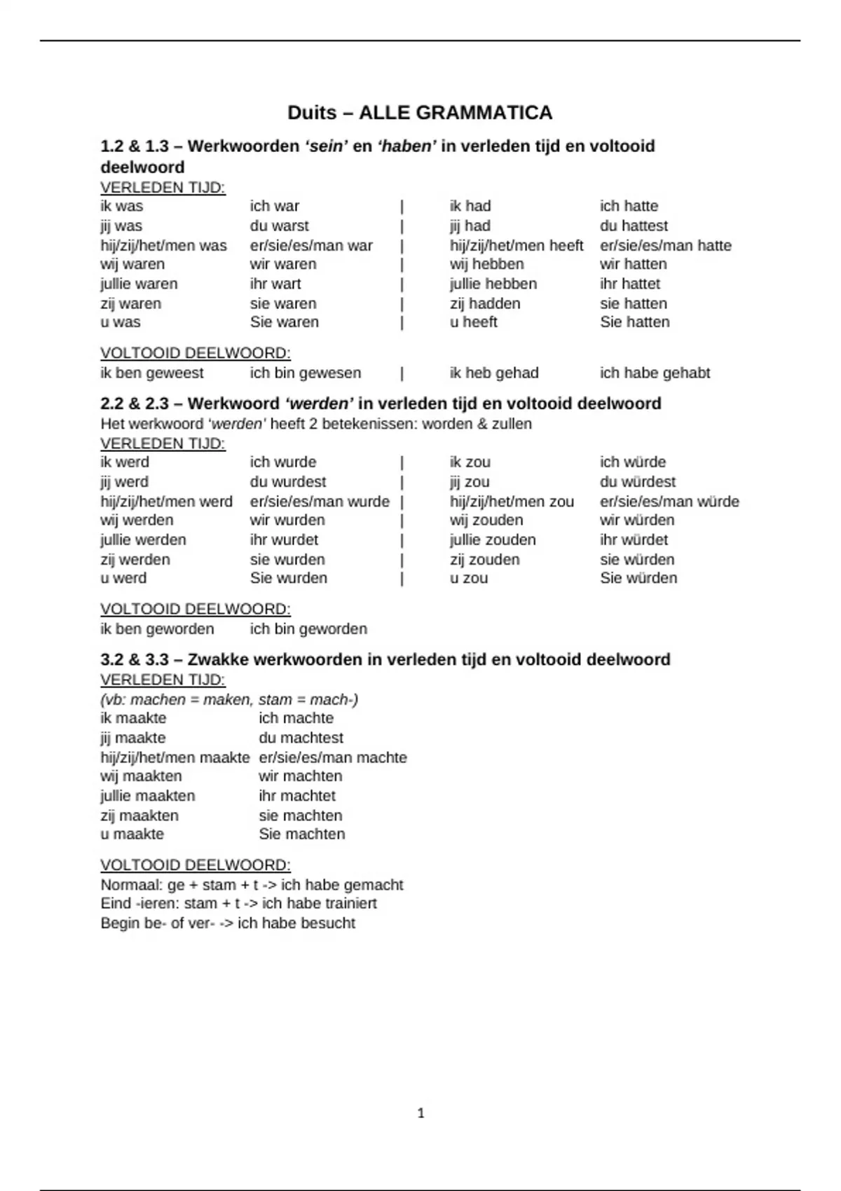 1.2 & 1.3 – Werkwoorden ‘sein’ en ‘haben’ in verleden tijd en voltooid