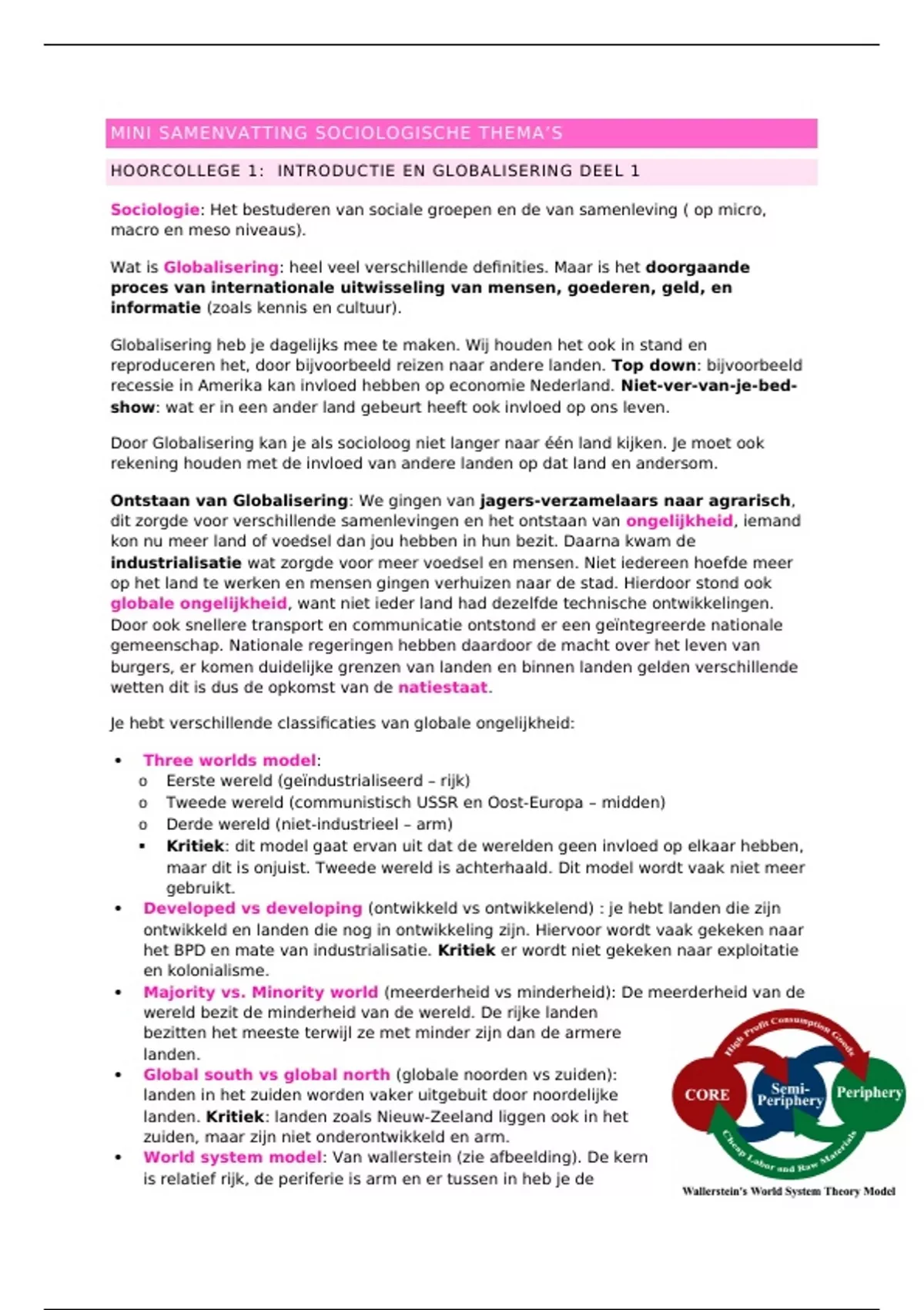 HOORCOLLEGE 1: INTRODUCTIE EN GLOBALISERING DEEL 1
