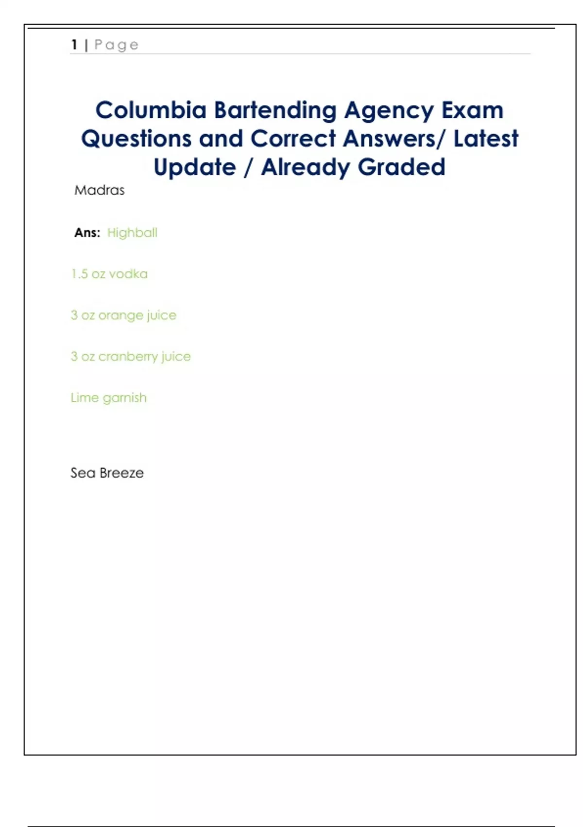 Columbia Bartending Agency Exam Questions and Correct Answers/ Latest Update / Already Graded